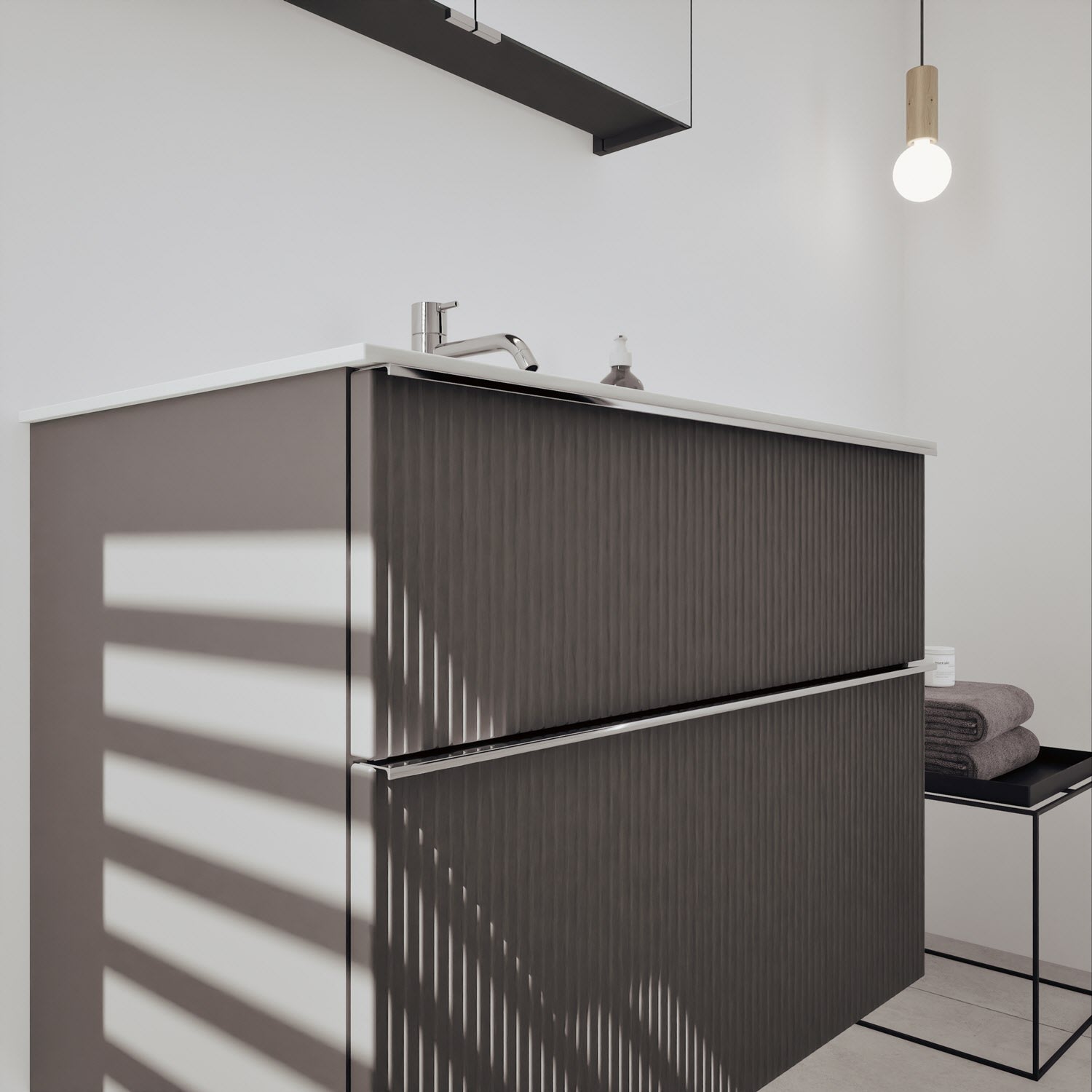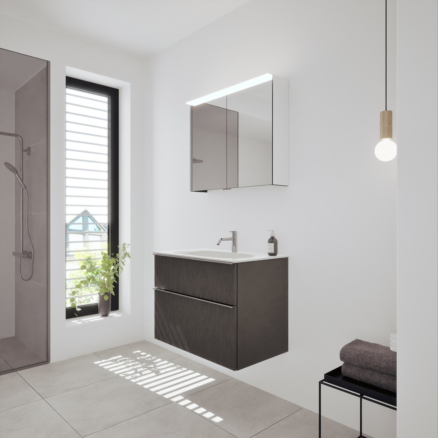 - Spiegelschrank, Waschtischunterschrank, Waschtisch,burgbad cleanFlow, Befestigung außer Stockschrauben