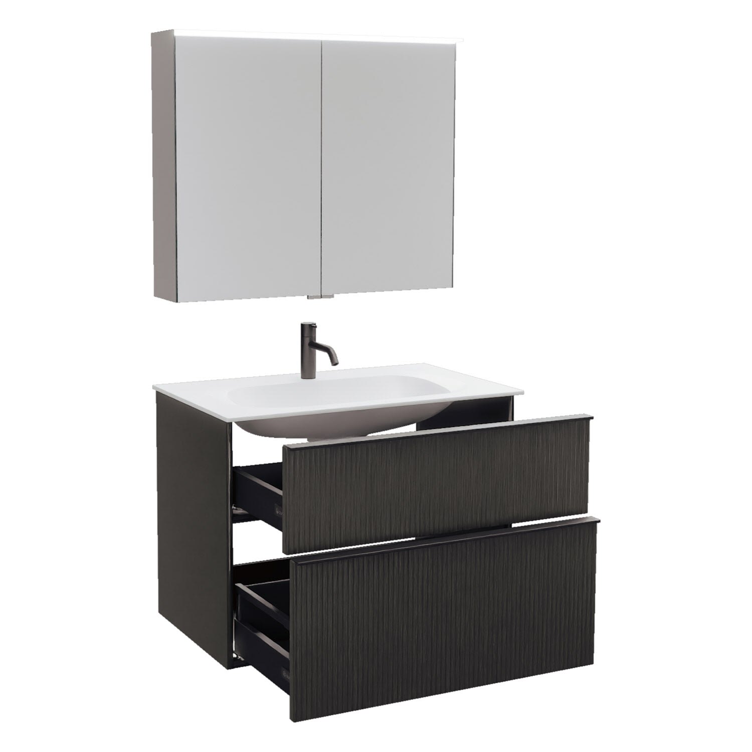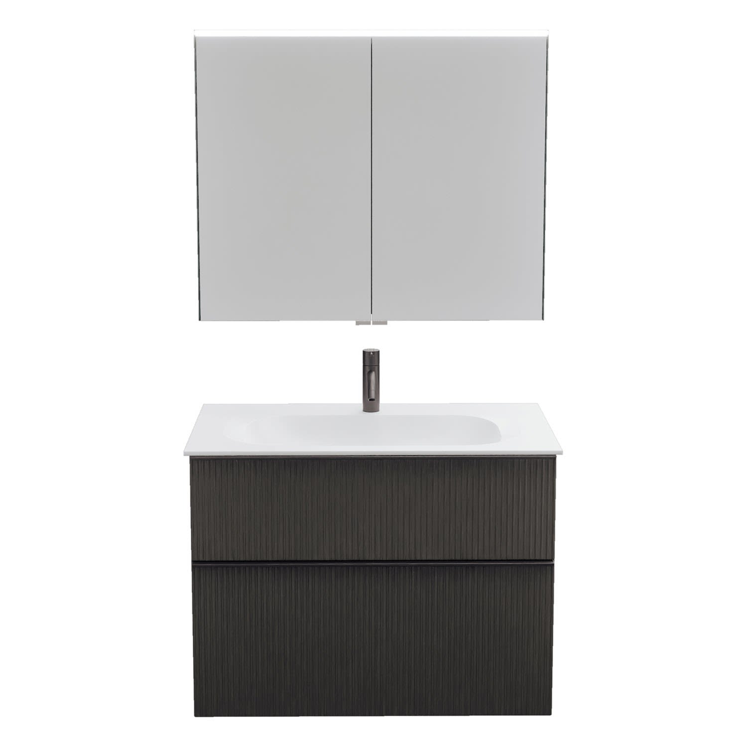 burgbad Fiumo 2.0 Badmöbelset 82 cm mit Waschtisch mit Unterschrank mit Griff G0200 und Spiegelschrank