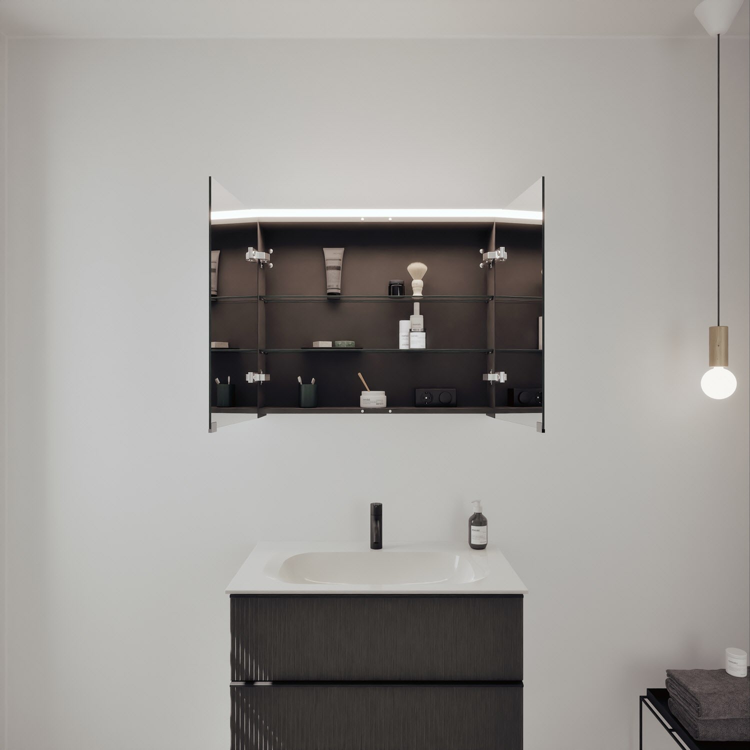 - Spiegelschrank, Waschtischunterschrank, Waschtisch,burgbad cleanFlow, Befestigung außer Stockschrauben