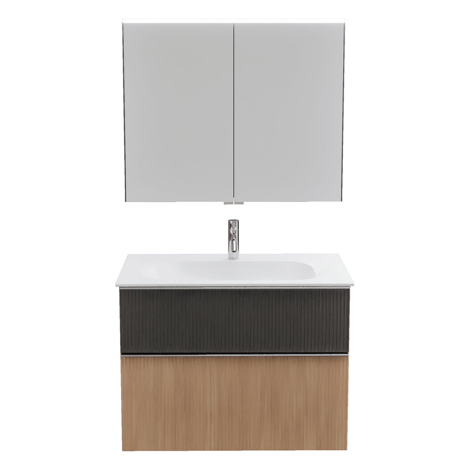 burgbad Fiumo 2.0 Badmöbelset 82 cm mit Waschtisch mit Unterschrank mit Griff G0146 und Spiegelschrank