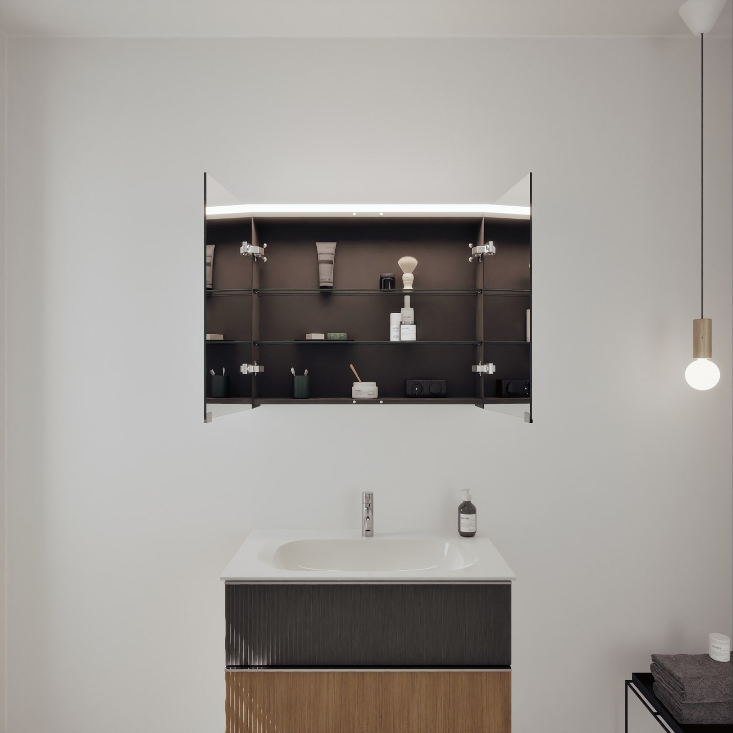 - Spiegelschrank, Waschtischunterschrank, Waschtisch,burgbad cleanFlow, Befestigung außer Stockschrauben