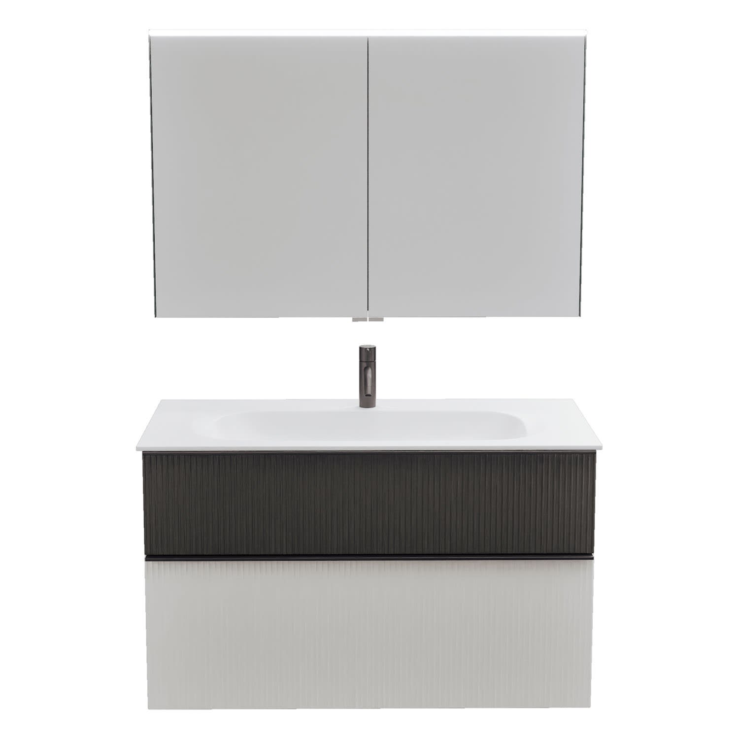 burgbad Fiumo 2.0 Badmöbelset 102 cm mit Waschtisch mit Unterschrank mit Griff G0200 und Spiegelschrank