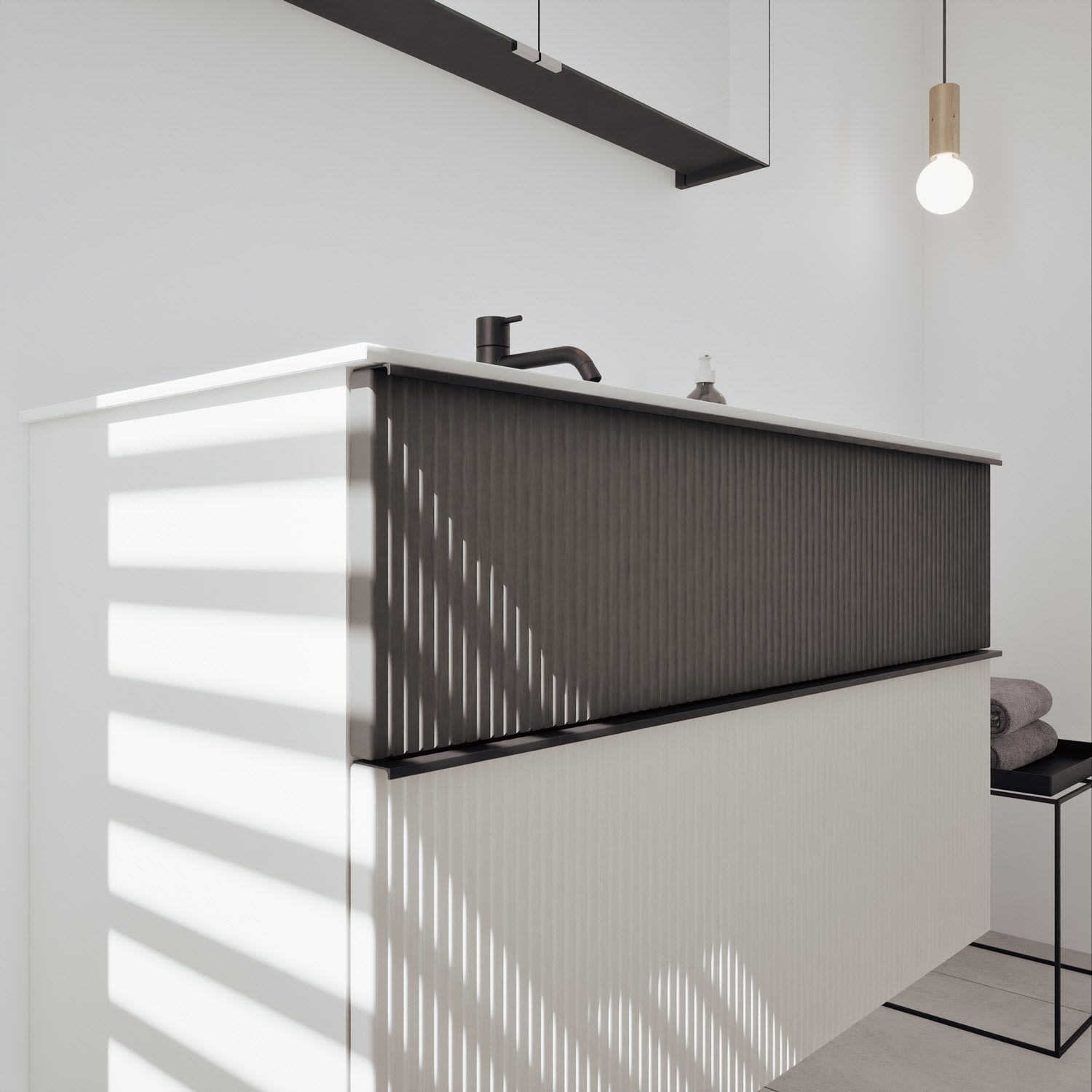 - Spiegelschrank, Waschtischunterschrank, Waschtisch,burgbad cleanFlow, Befestigung außer Stockschrauben