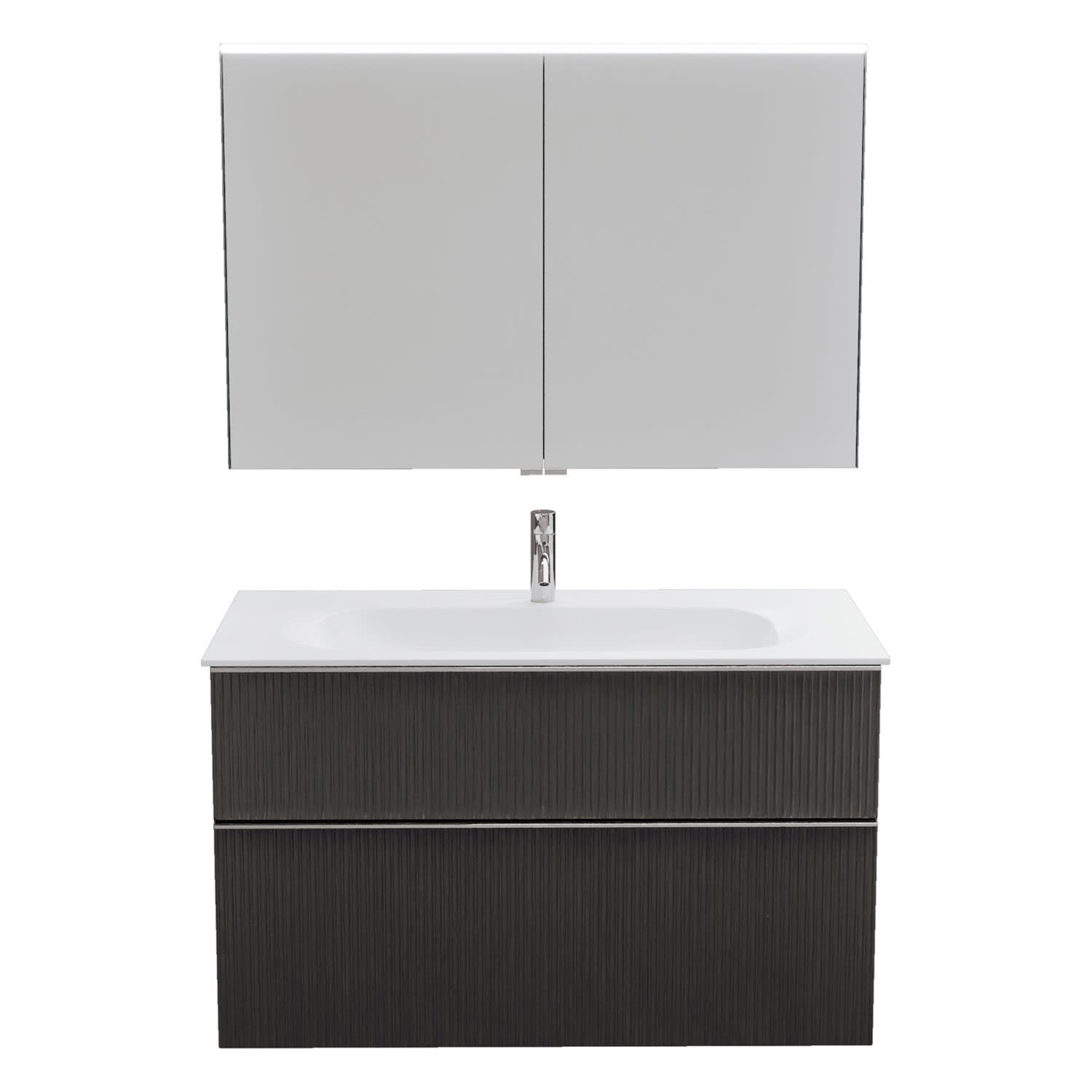 burgbad Fiumo 2.0 Badmöbelset 102 cm mit Waschtisch mit Unterschrank mit Griff G0146 und Spiegelschrank