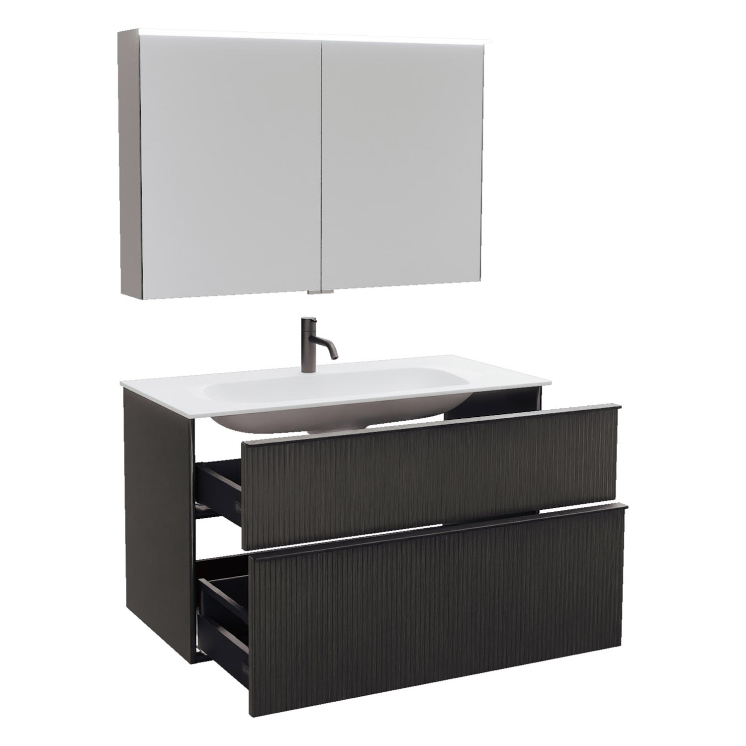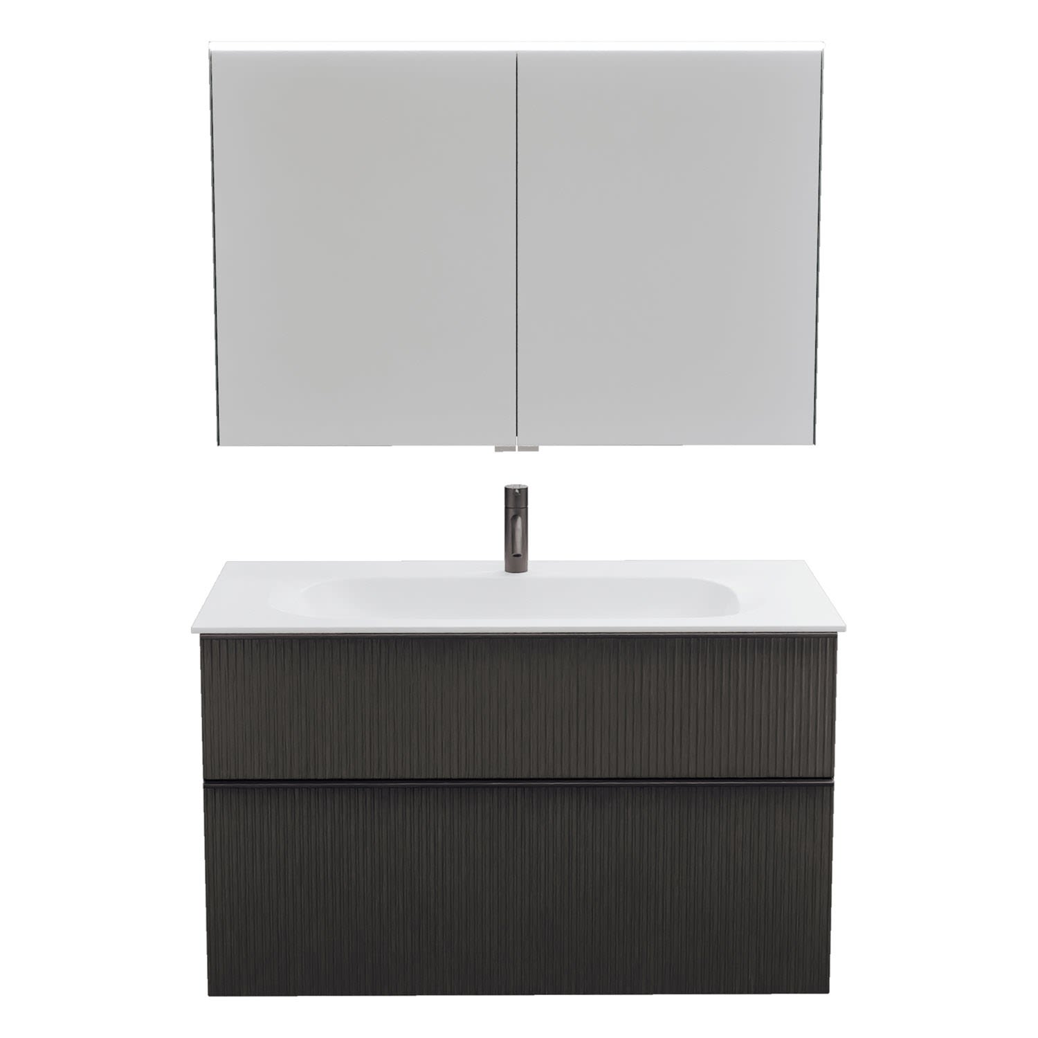 burgbad Fiumo 2.0 Badmöbelset 102 cm mit Waschtisch mit Unterschrank mit Griff G0200 und Spiegelschrank