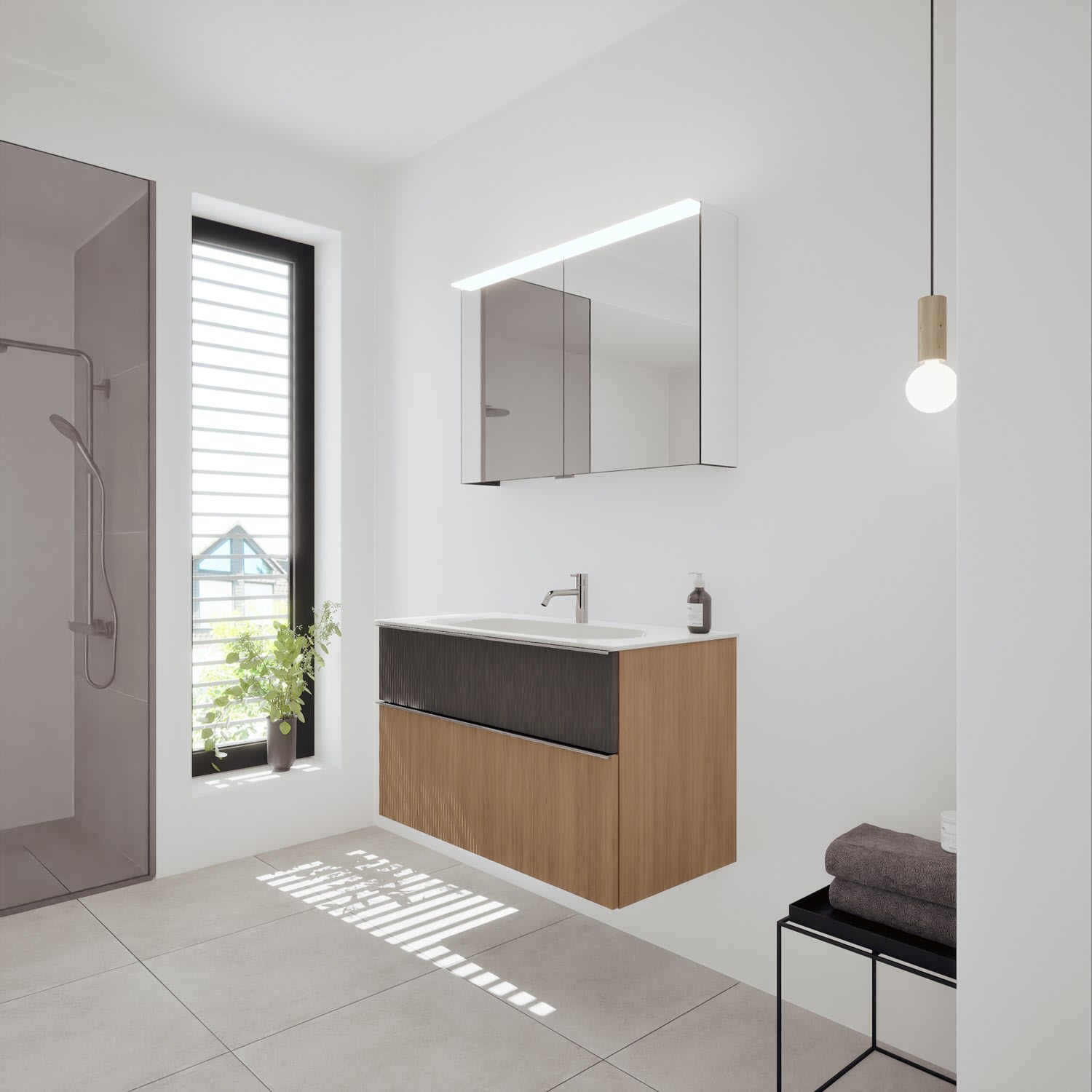 - Spiegelschrank, Waschtischunterschrank, Waschtisch,burgbad cleanFlow, Befestigung außer Stockschrauben