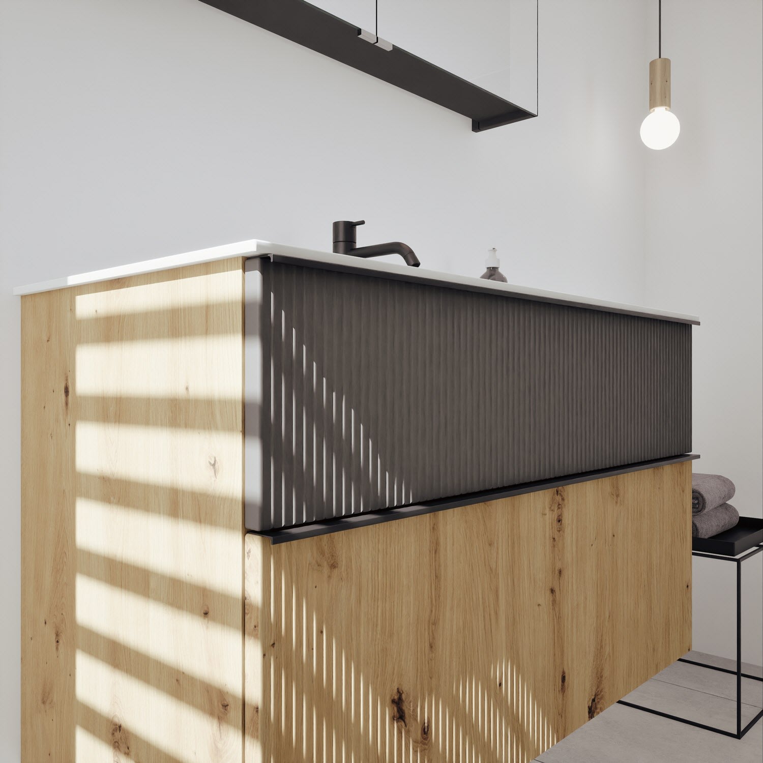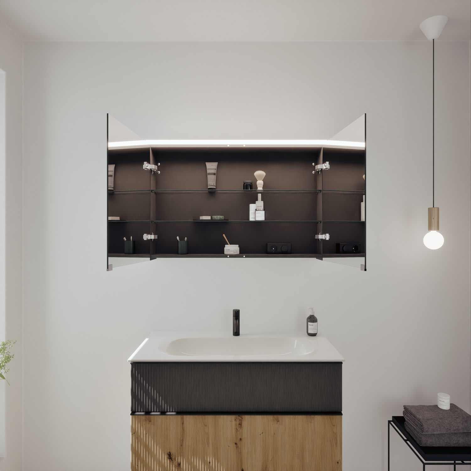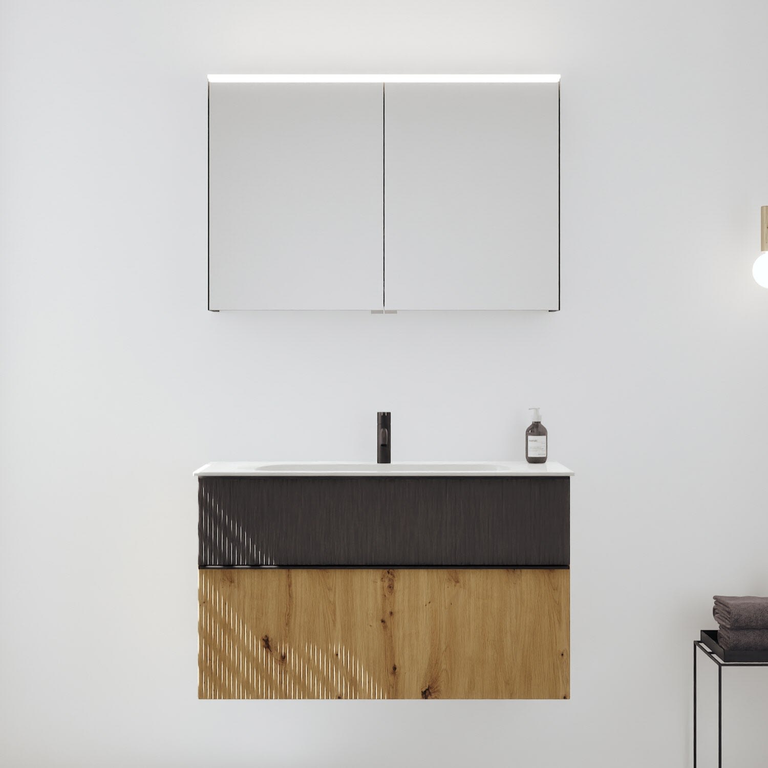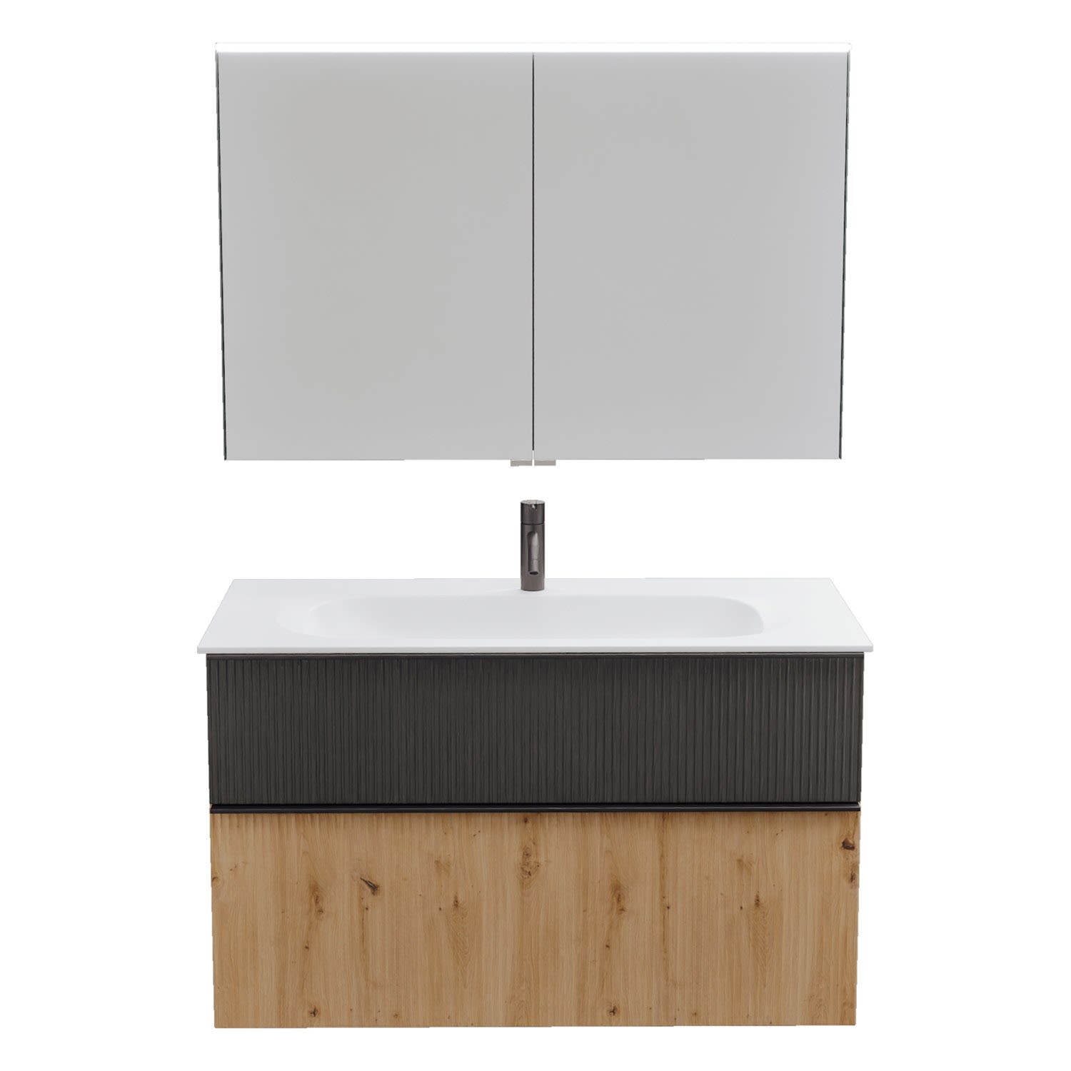 burgbad Fiumo 2.0 Badmöbelset 102 cm mit Waschtisch mit Unterschrank mit Griff G0200 und Spiegelschrank