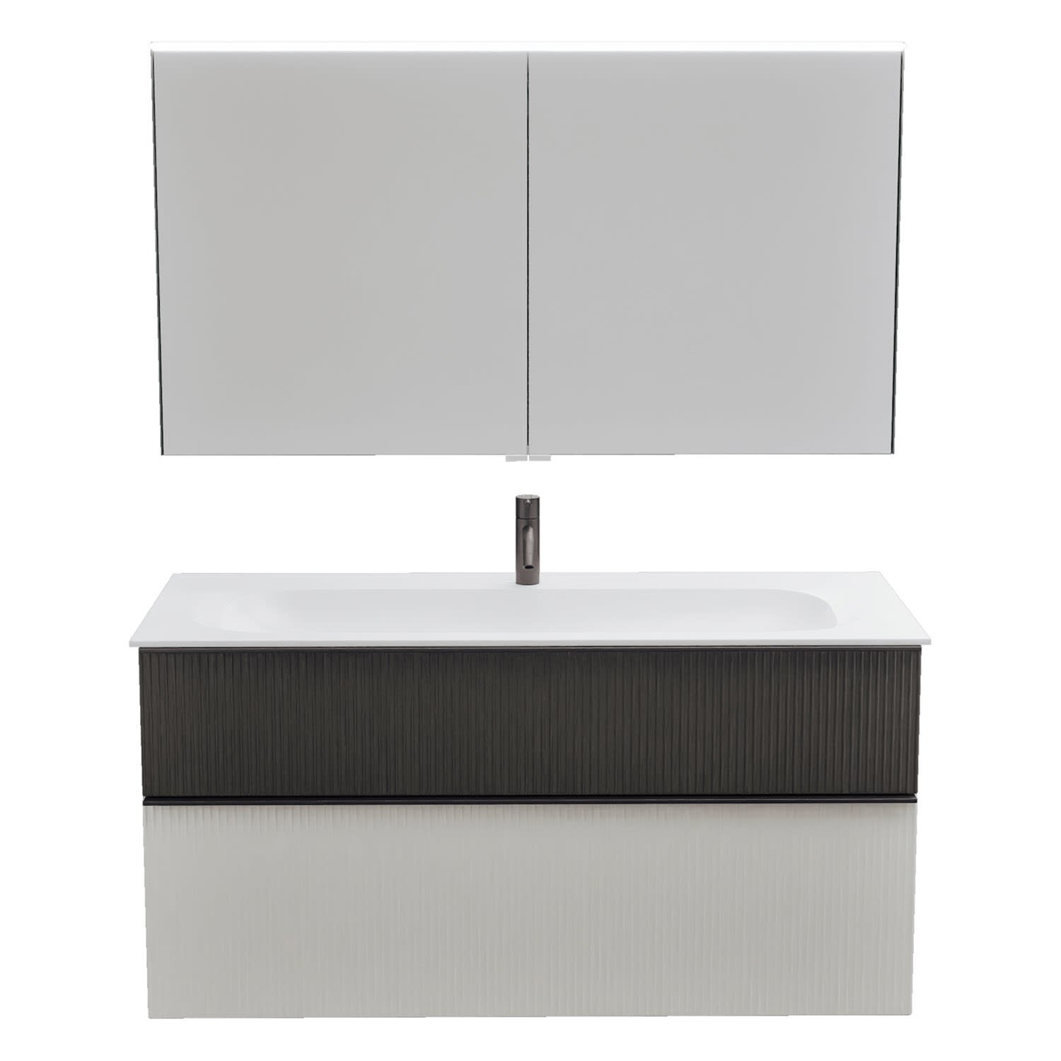 burgbad Fiumo 2.0 Badmöbelset 122 cm mit Waschtisch mit Unterschrank mit Griff G0200 und Spiegelschrank
