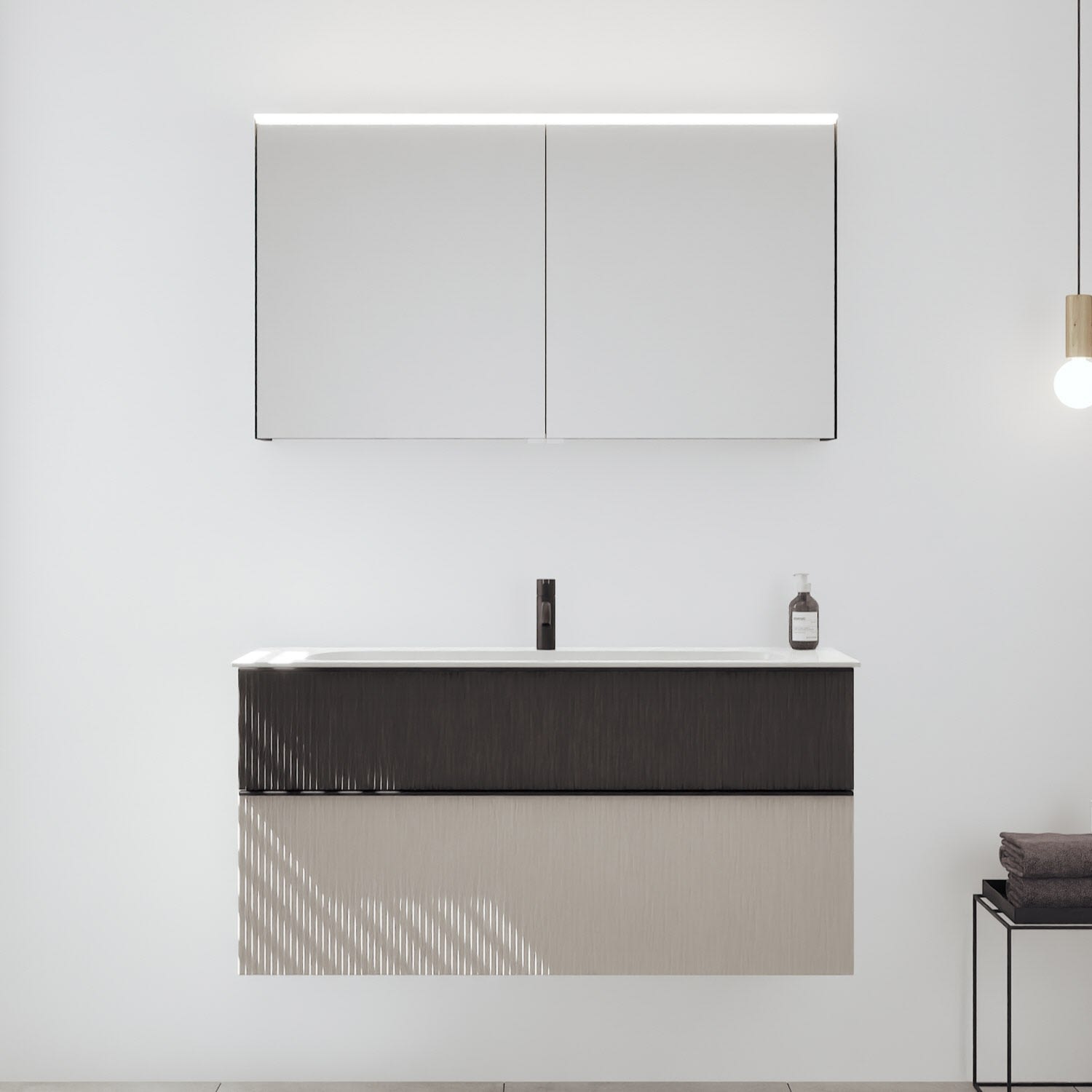 - Spiegelschrank, Waschtischunterschrank, Waschtisch,burgbad cleanFlow, Befestigung außer Stockschrauben