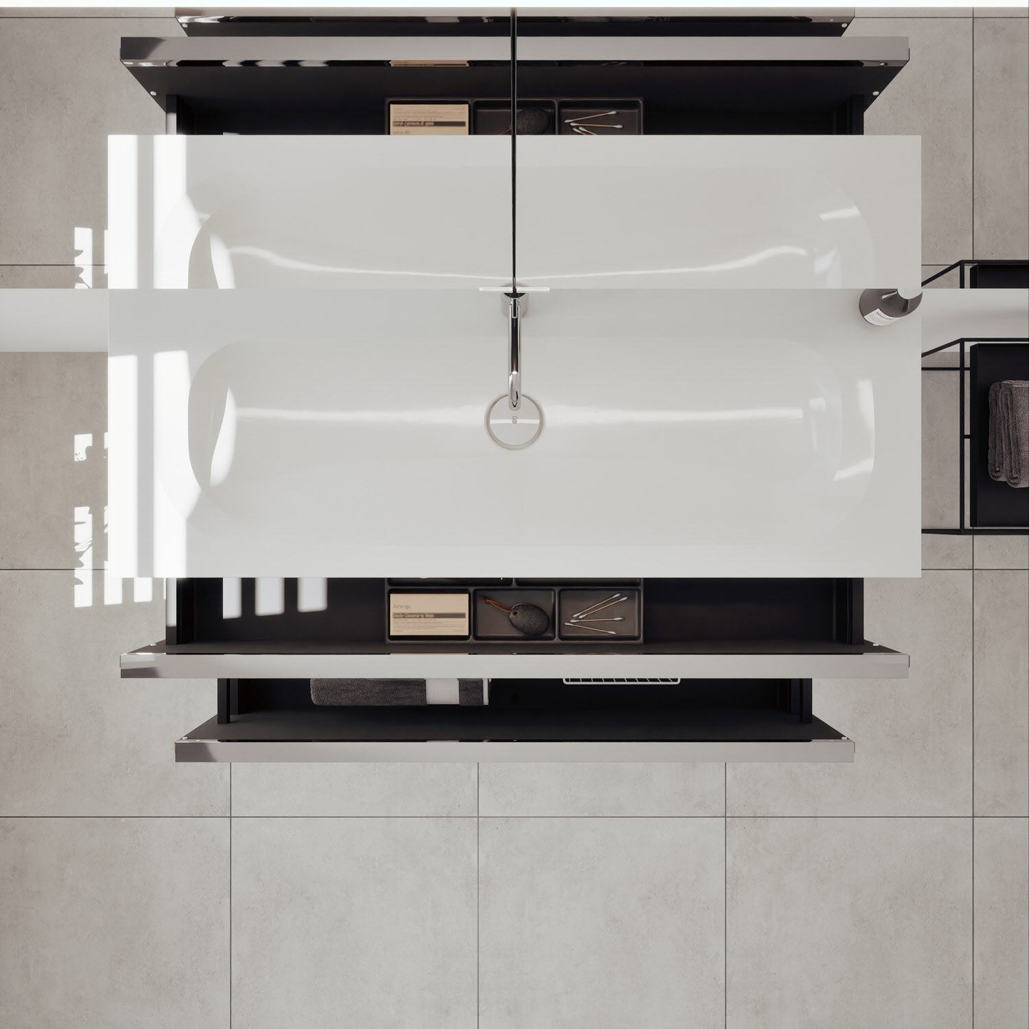 - Spiegelschrank, Waschtischunterschrank, Waschtisch,burgbad cleanFlow, Befestigung außer Stockschrauben