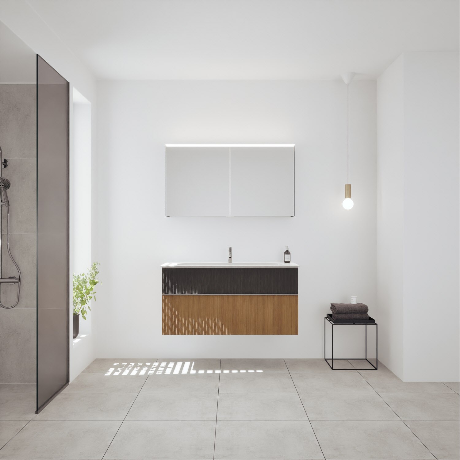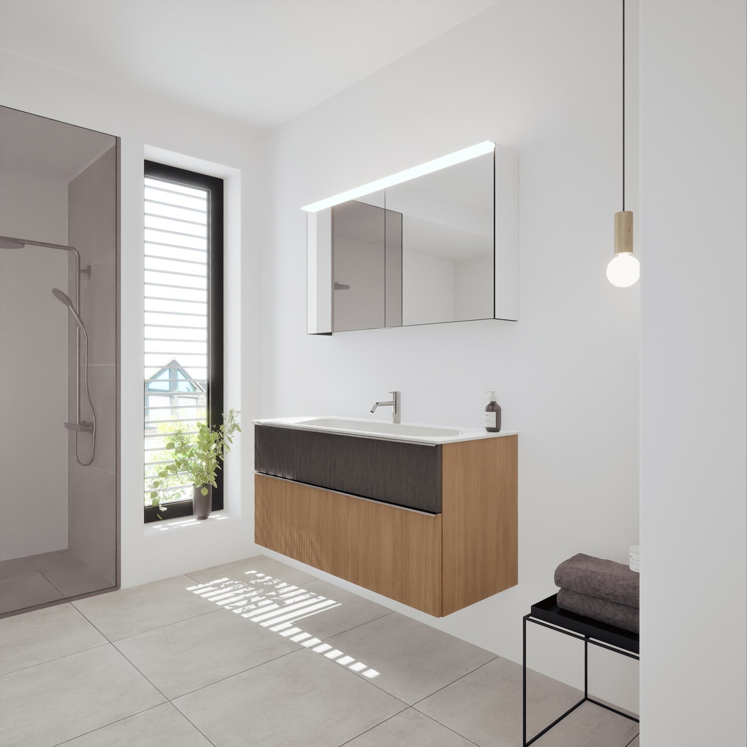 burgbad Fiumo 2.0 Badmöbelset 122 cm mit Waschtisch mit Unterschrank mit Griff G0146 und Spiegelschrank