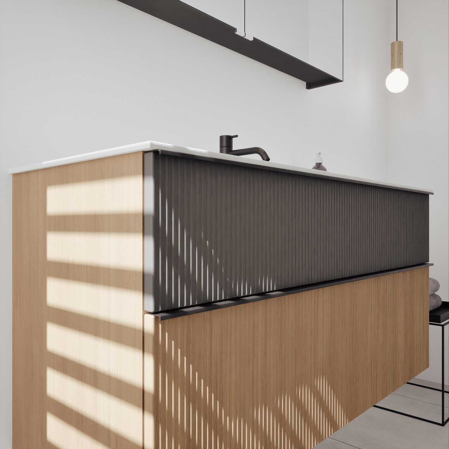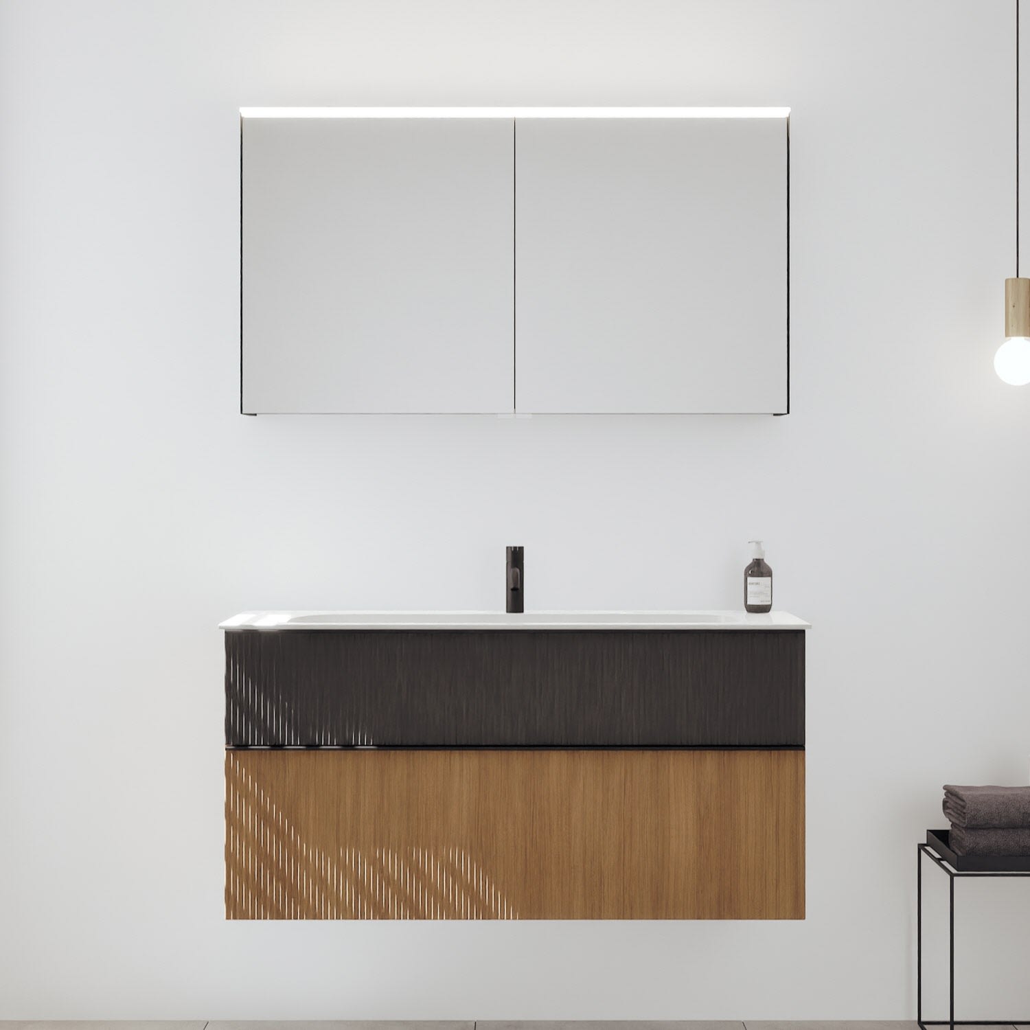 burgbad Fiumo 2.0 Badmöbelset 122 cm mit Waschtisch mit Unterschrank mit Griff G0200 und Spiegelschrank