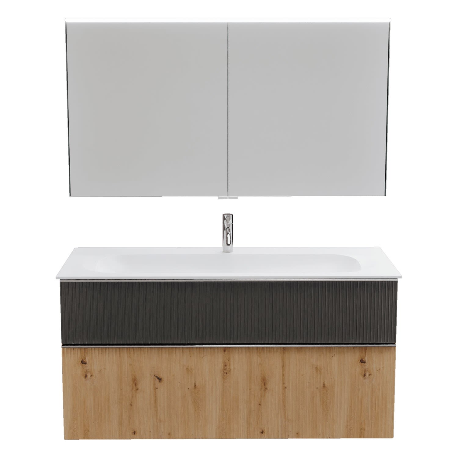 burgbad Fiumo 2.0 Badmöbelset 122 cm mit Waschtisch mit Unterschrank mit Griff G0146 und Spiegelschrank