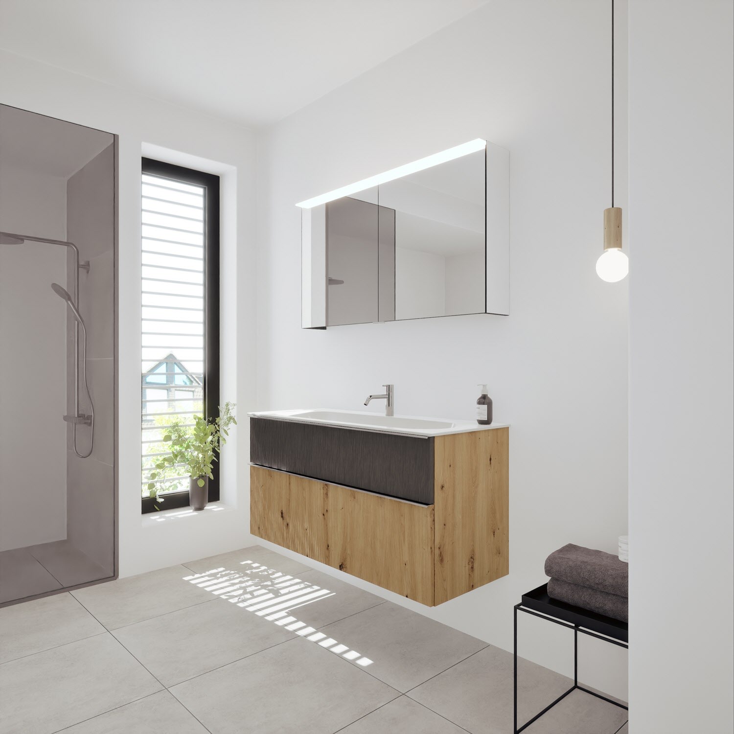 - Spiegelschrank, Waschtischunterschrank, Waschtisch,burgbad cleanFlow, Befestigung außer Stockschrauben