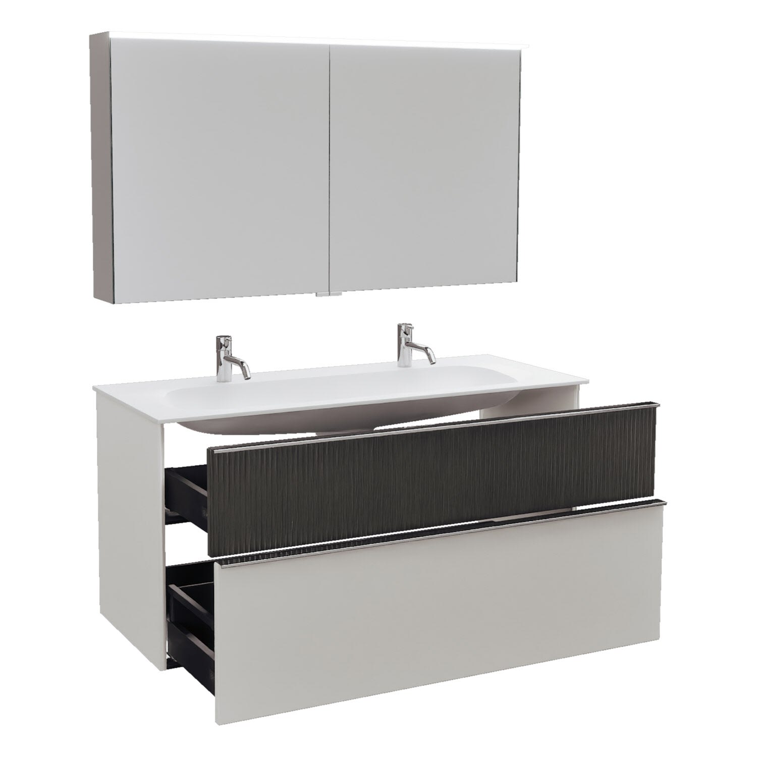 burgbad Fiumo 2.0 Badmöbelset 122 cm mit Waschtisch mit Unterschrank mit Griff G0146 und Spiegelschrank