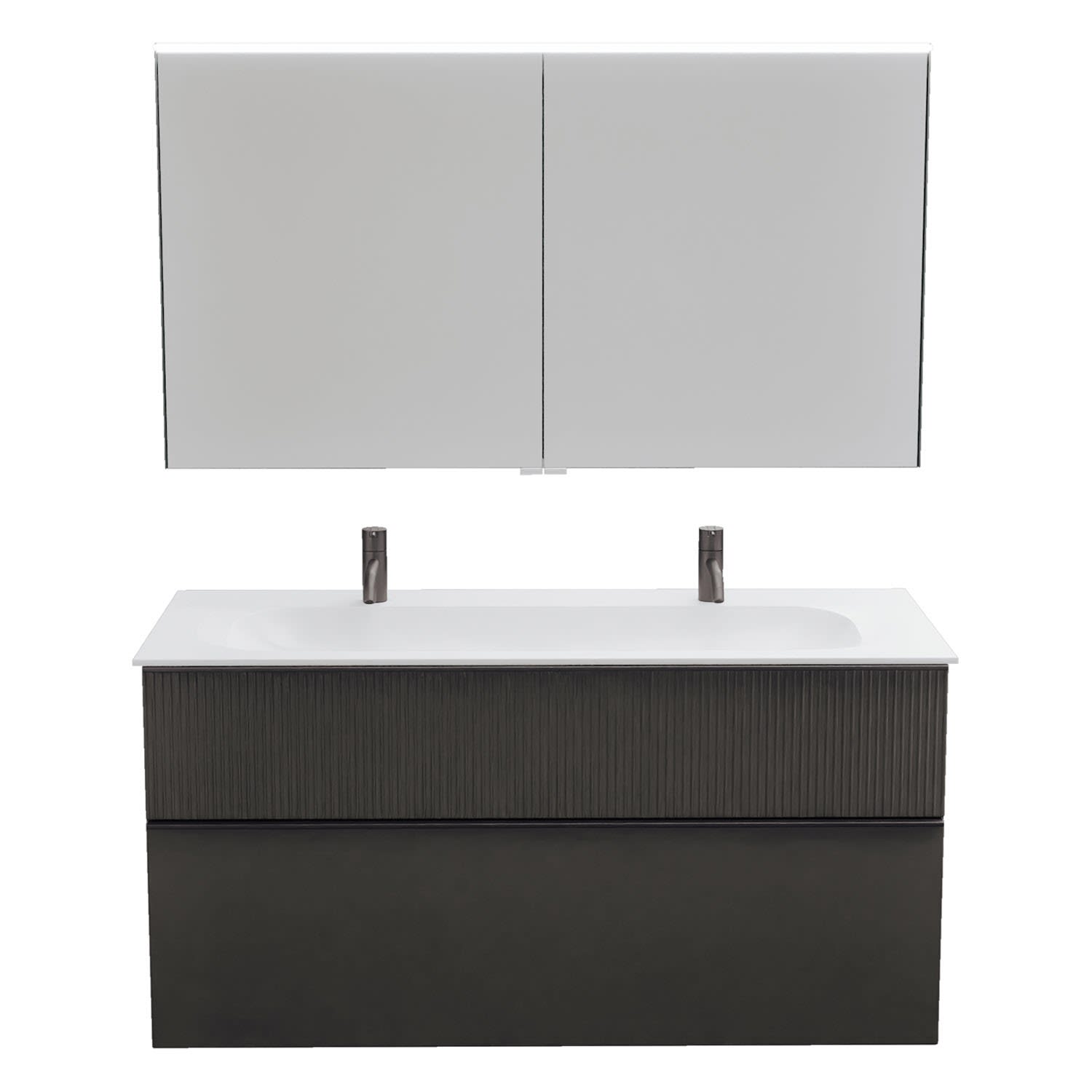 burgbad Fiumo 2.0 Badmöbelset 122 cm mit Waschtisch mit Unterschrank mit Griff G0200 und Spiegelschrank