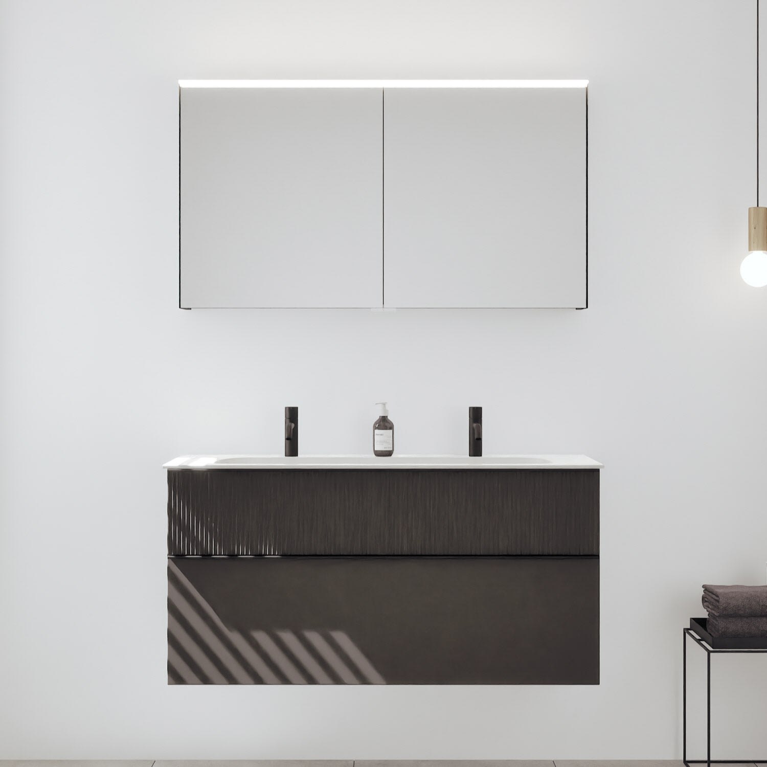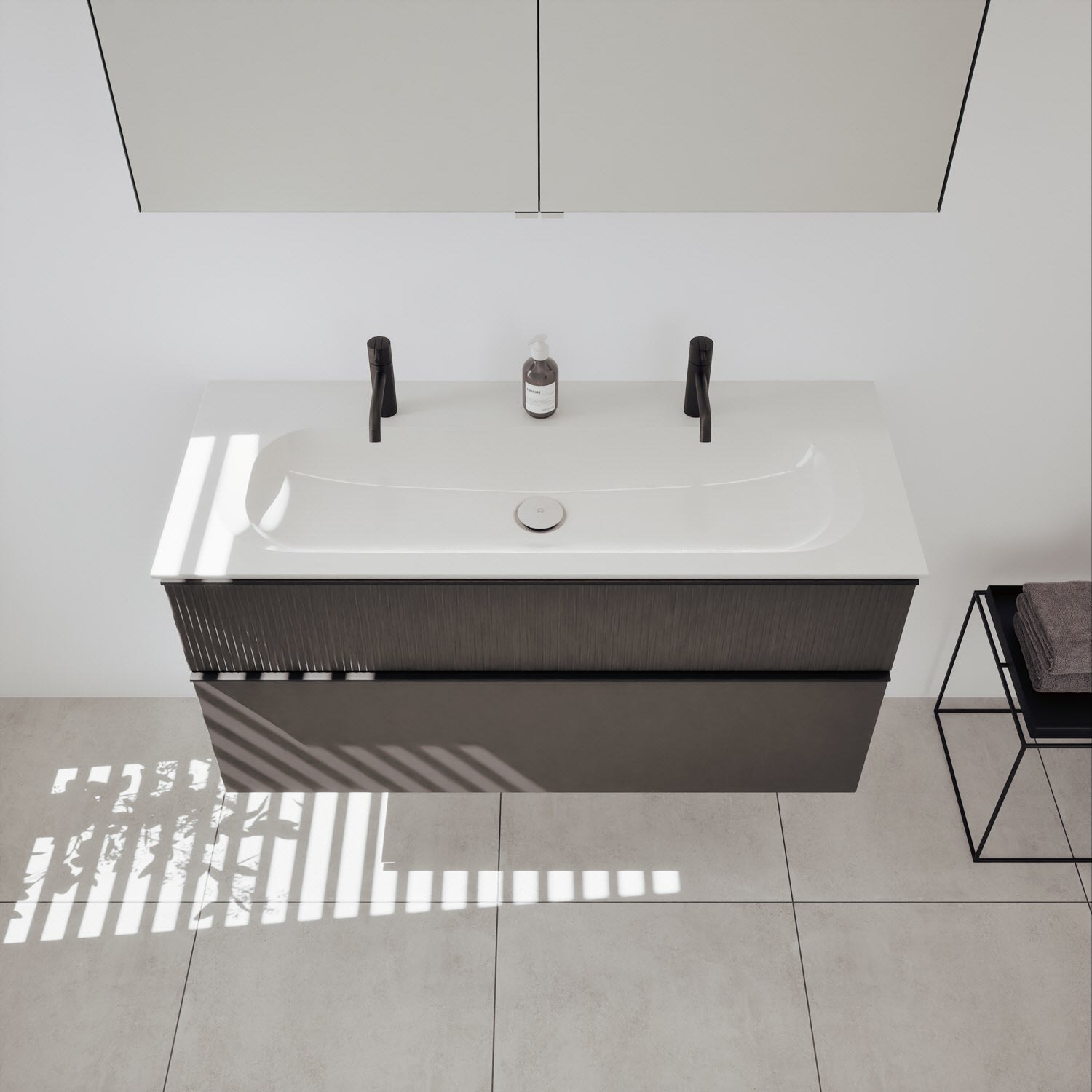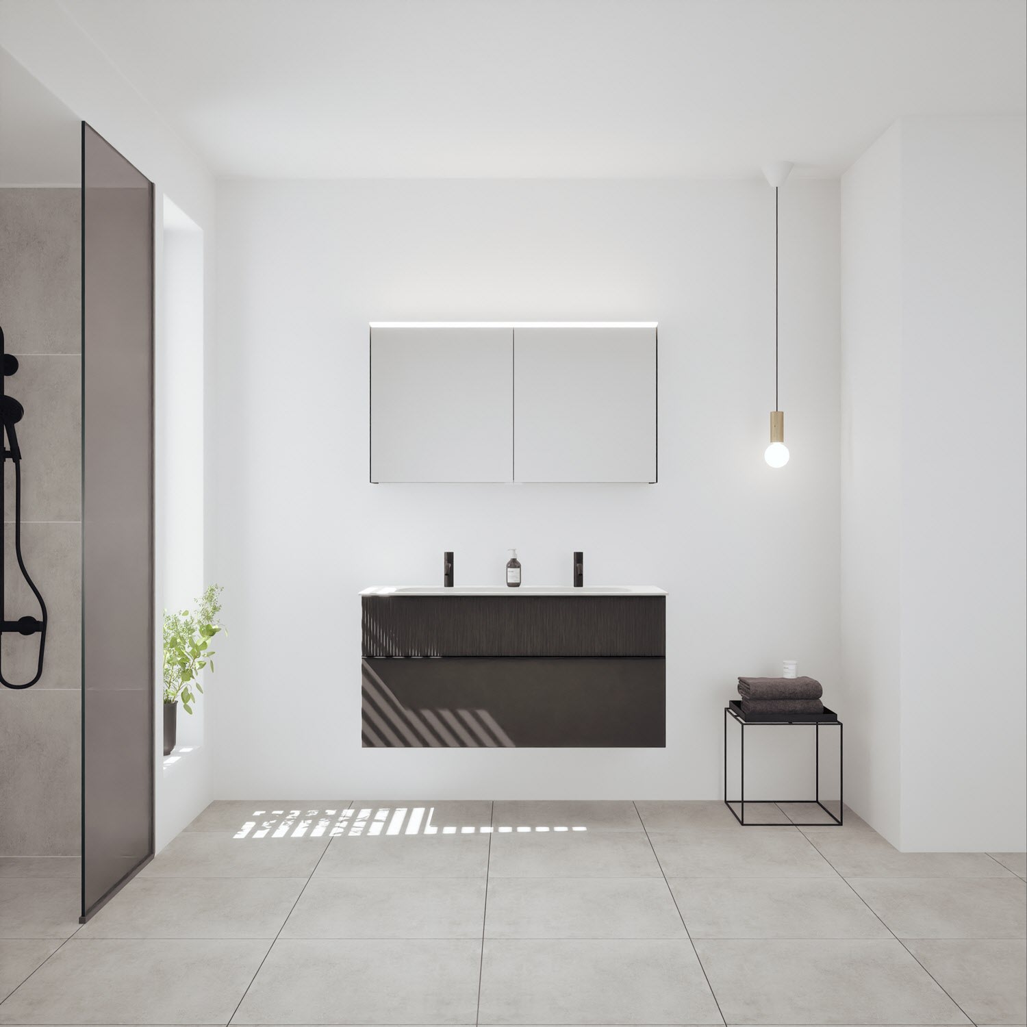 - Spiegelschrank, Waschtischunterschrank, Waschtisch,burgbad cleanFlow, Befestigung außer Stockschrauben