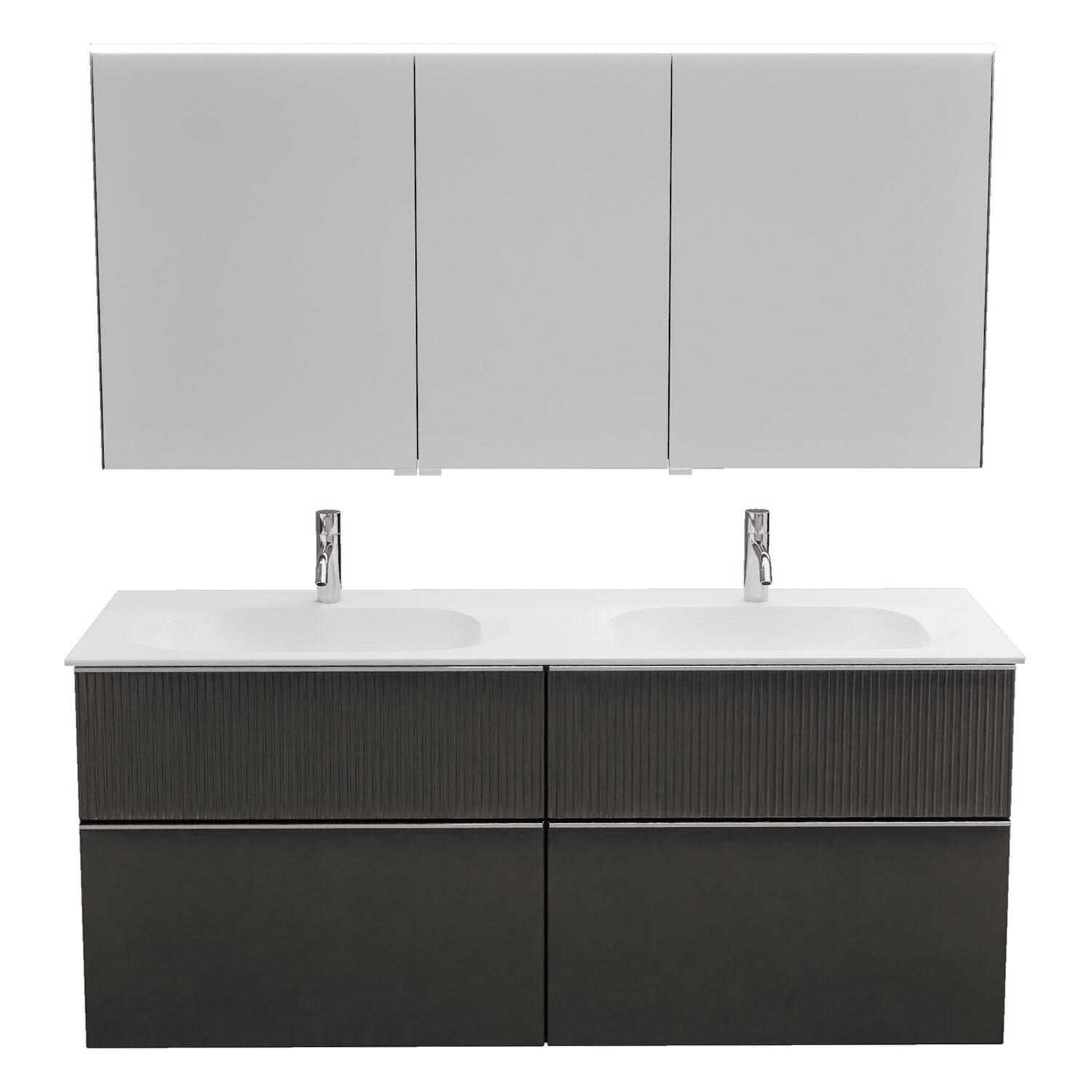 burgbad Fiumo 2.0 Badmöbelset 142 cm mit Waschtisch mit Unterschrank mit Griff G0146 und Spiegelschrank
