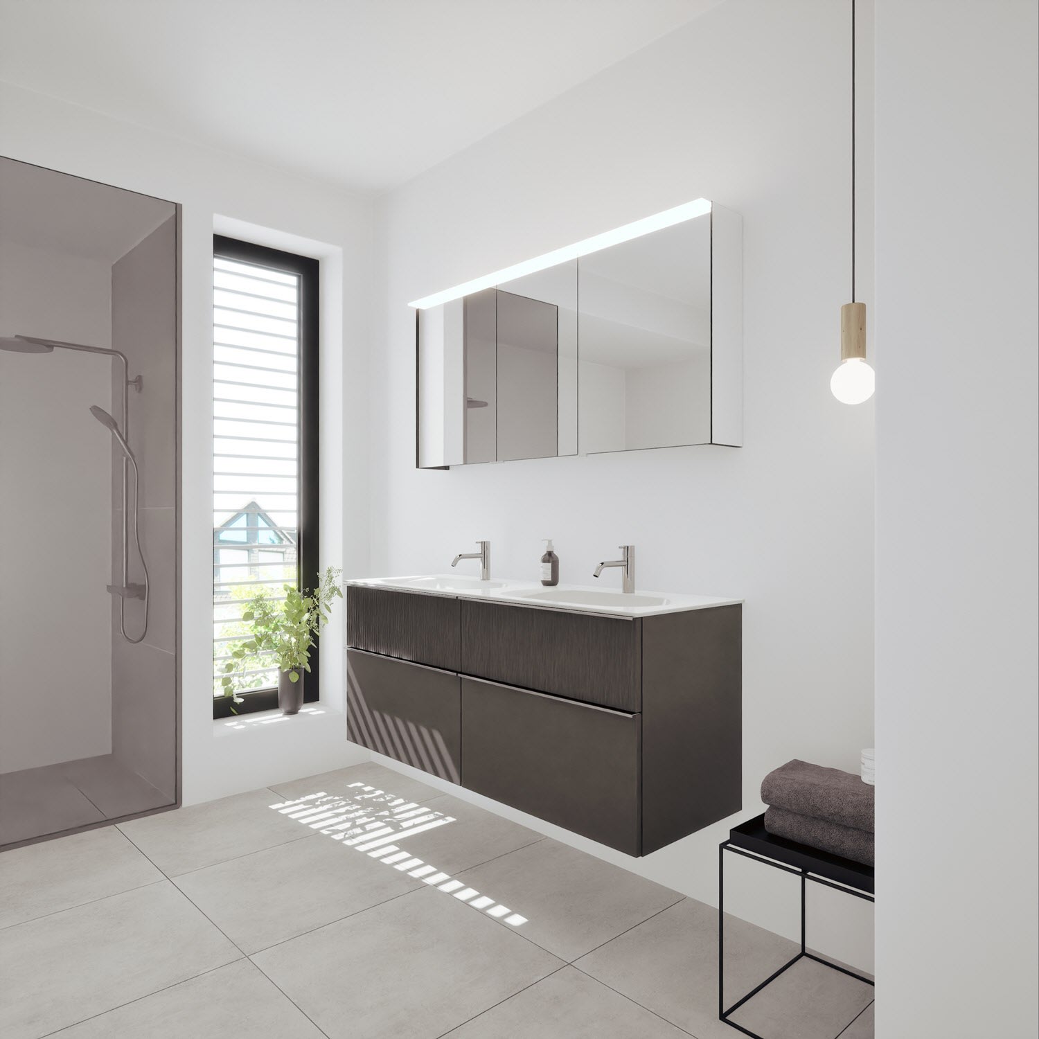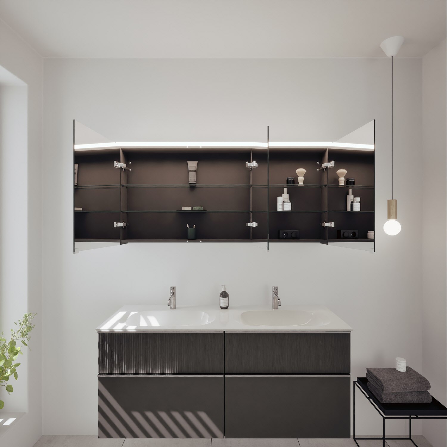 - Spiegelschrank, Waschtischunterschrank, Waschtisch,burgbad cleanFlow, Befestigung außer Stockschrauben