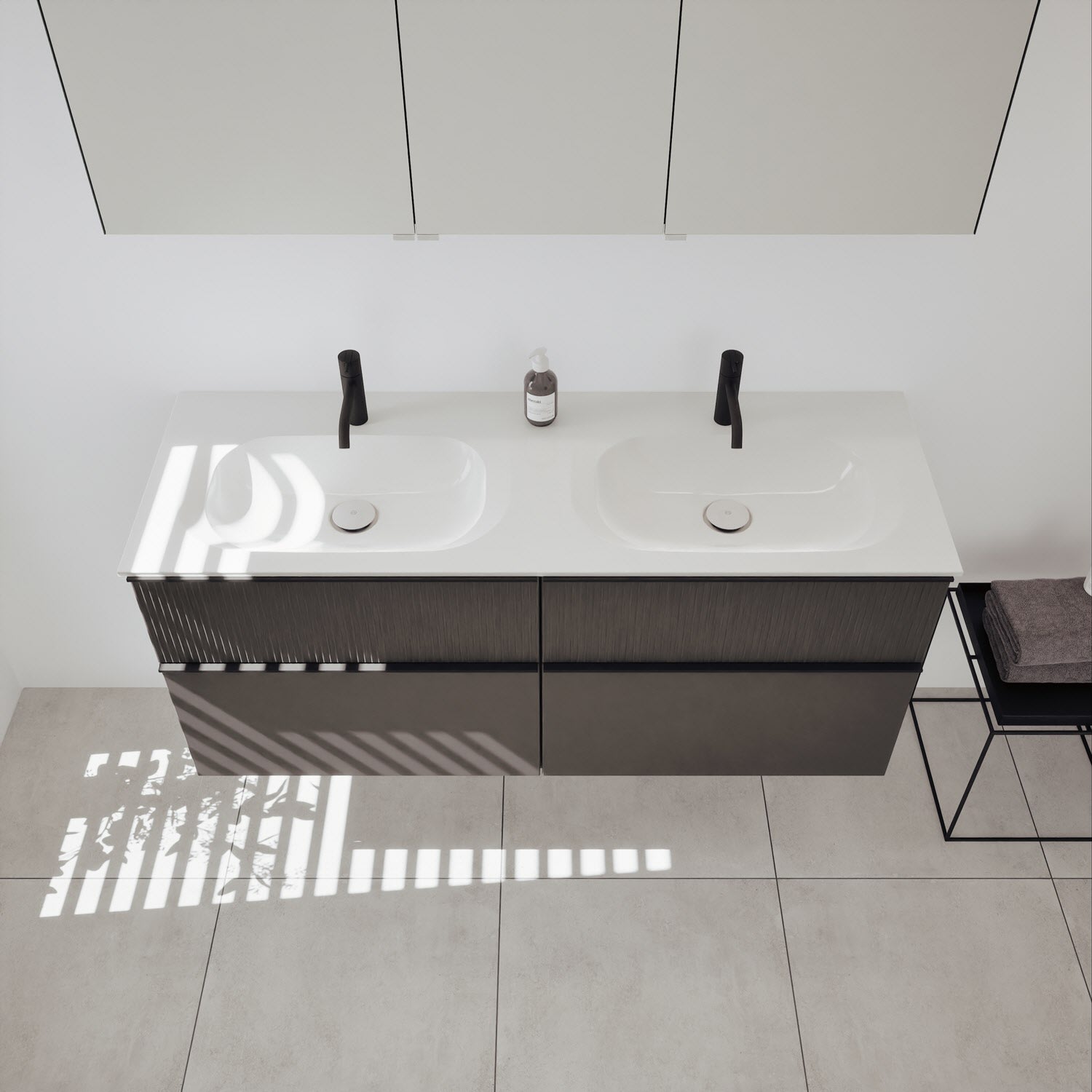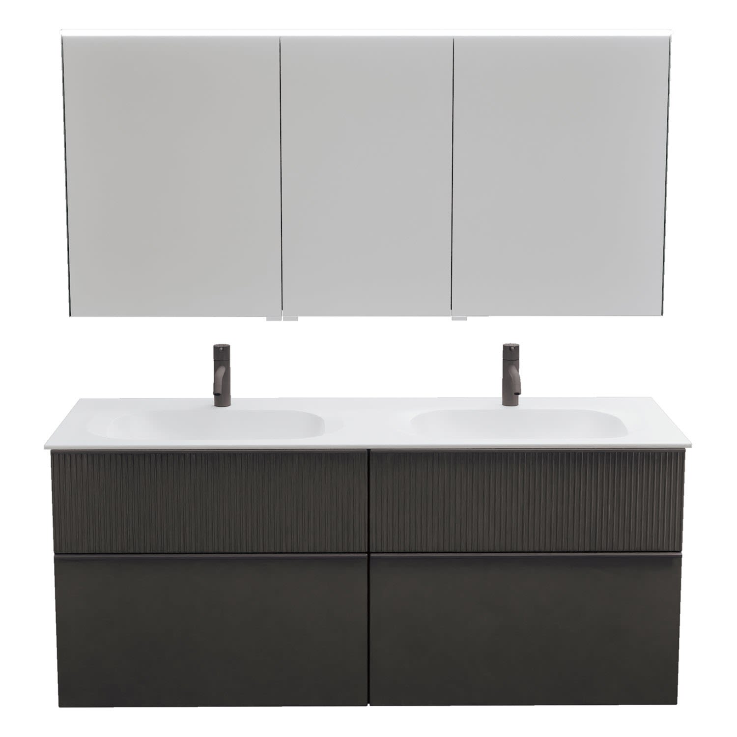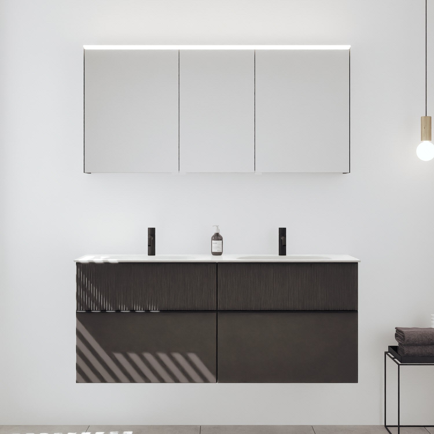 burgbad Fiumo 2.0 Badmöbelset 142 cm mit Waschtisch mit Unterschrank mit Griff G0200 und Spiegelschrank