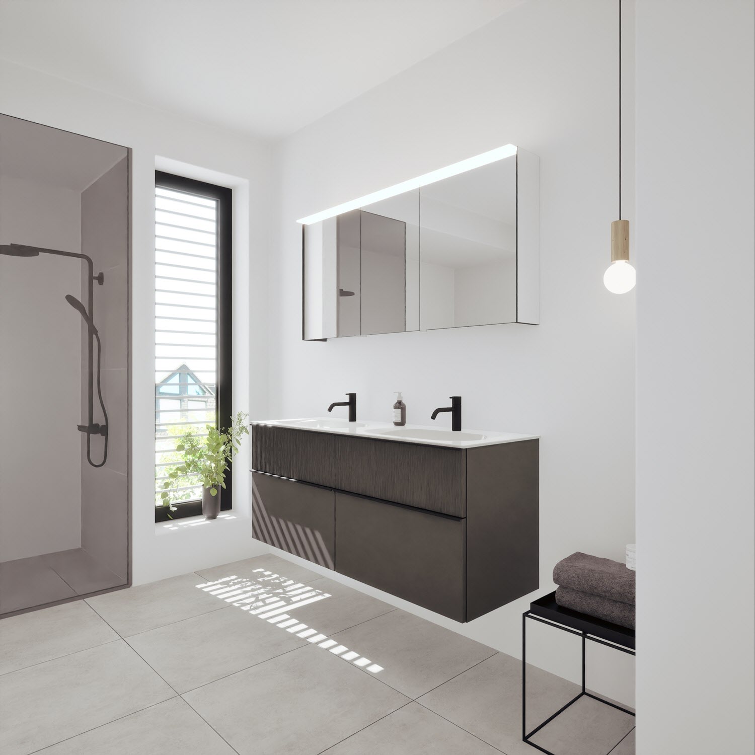 - Spiegelschrank, Waschtischunterschrank, Waschtisch,burgbad cleanFlow, Befestigung außer Stockschrauben