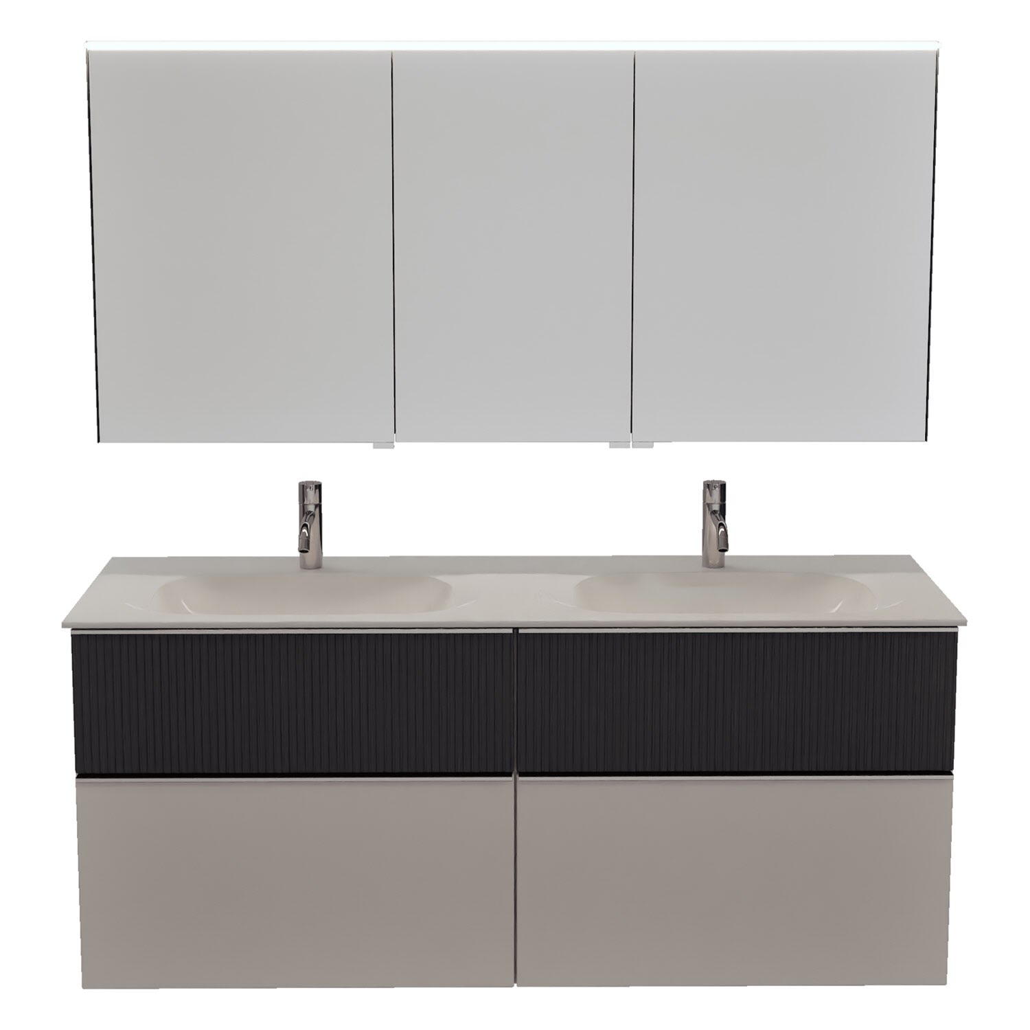 burgbad Fiumo 2.0 Badmöbelset 142 cm mit Waschtisch mit Unterschrank mit Griff G0146 und Spiegelschrank