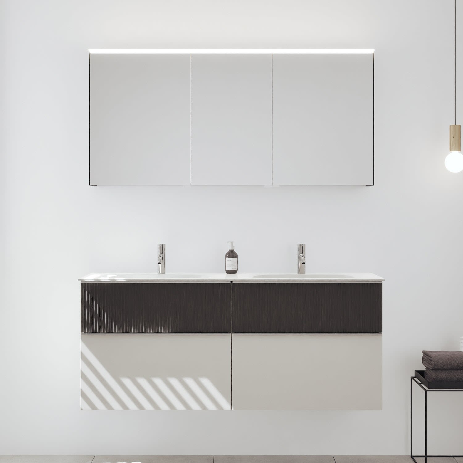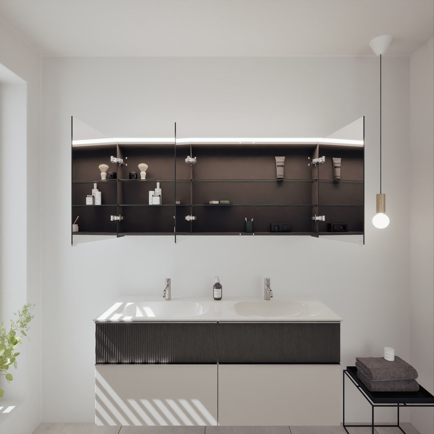 - Spiegelschrank, Waschtischunterschrank, Waschtisch,burgbad cleanFlow, Befestigung außer Stockschrauben