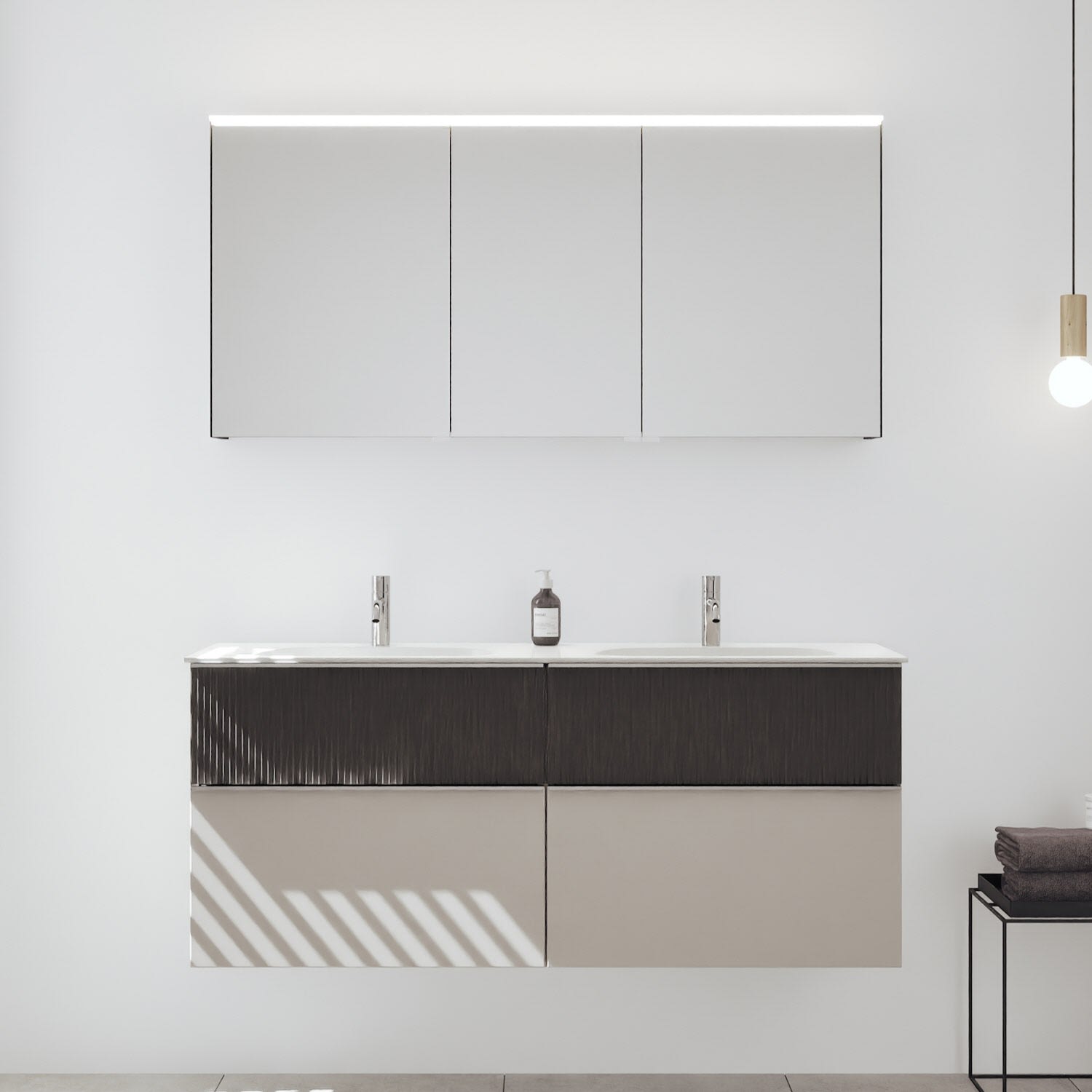 - Spiegelschrank, Waschtischunterschrank, Waschtisch,burgbad cleanFlow, Befestigung außer Stockschrauben