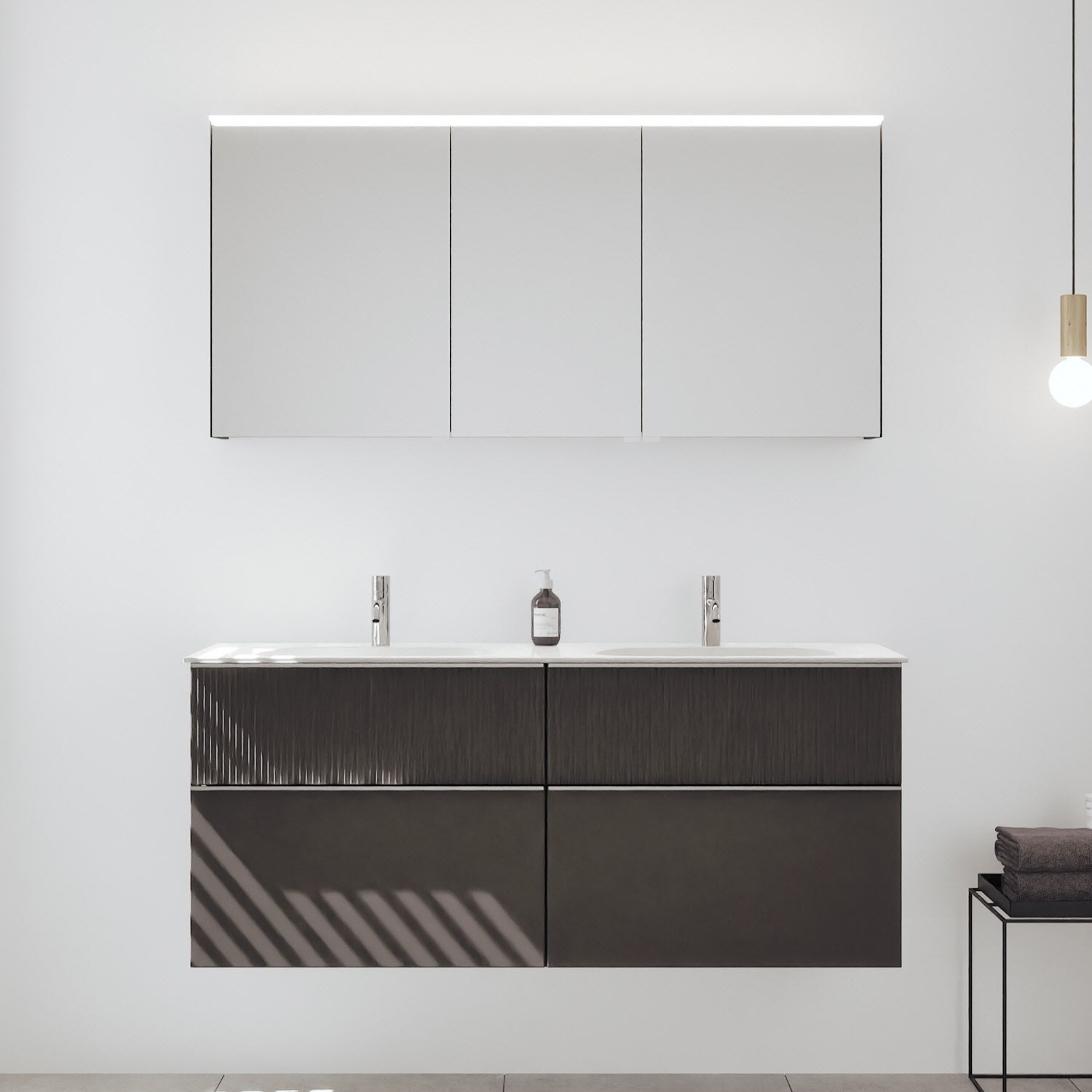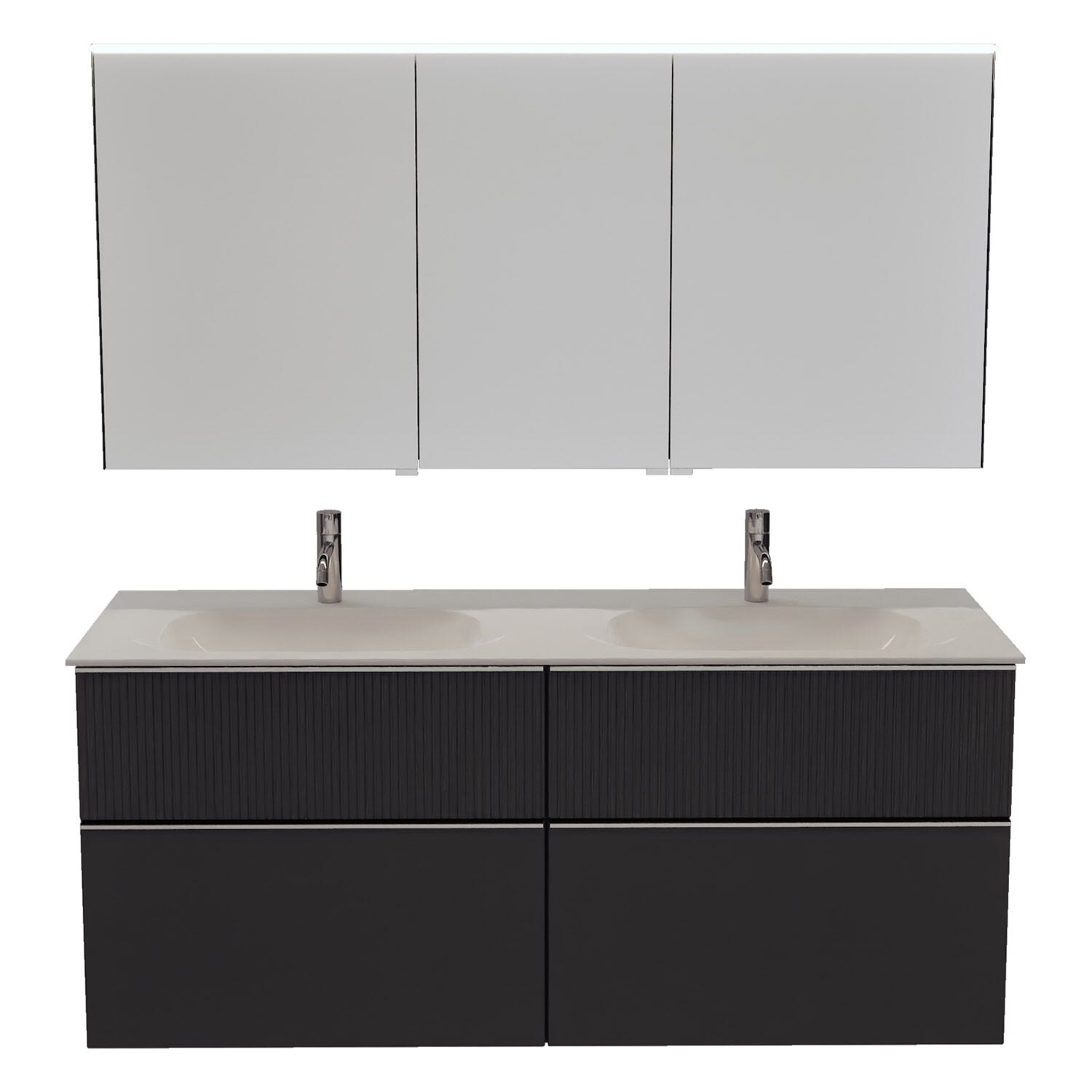 burgbad Fiumo 2.0 Badmöbelset 142 cm mit Waschtisch mit Unterschrank mit Griff G0146 und Spiegelschrank