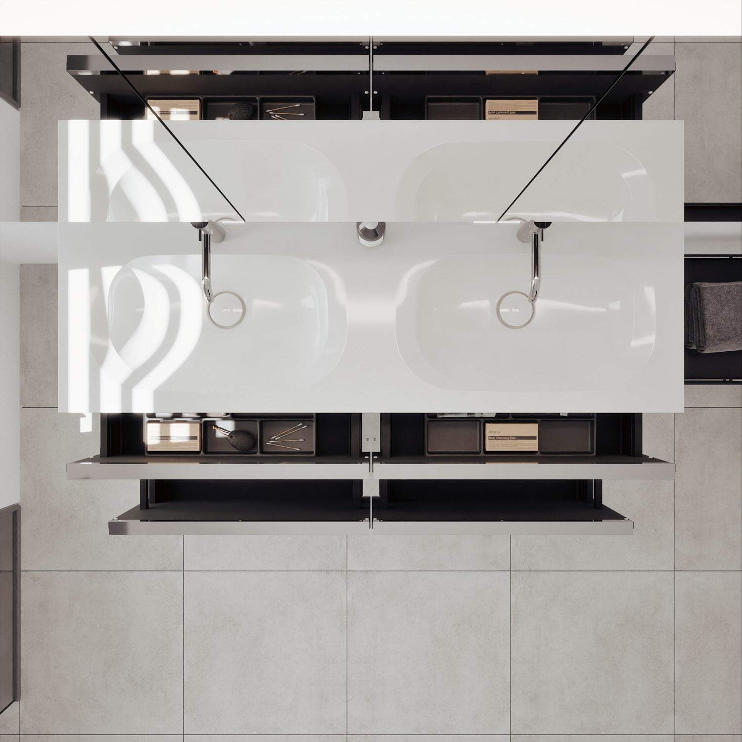 - Spiegelschrank, Waschtischunterschrank, Waschtisch,burgbad cleanFlow, Befestigung außer Stockschrauben