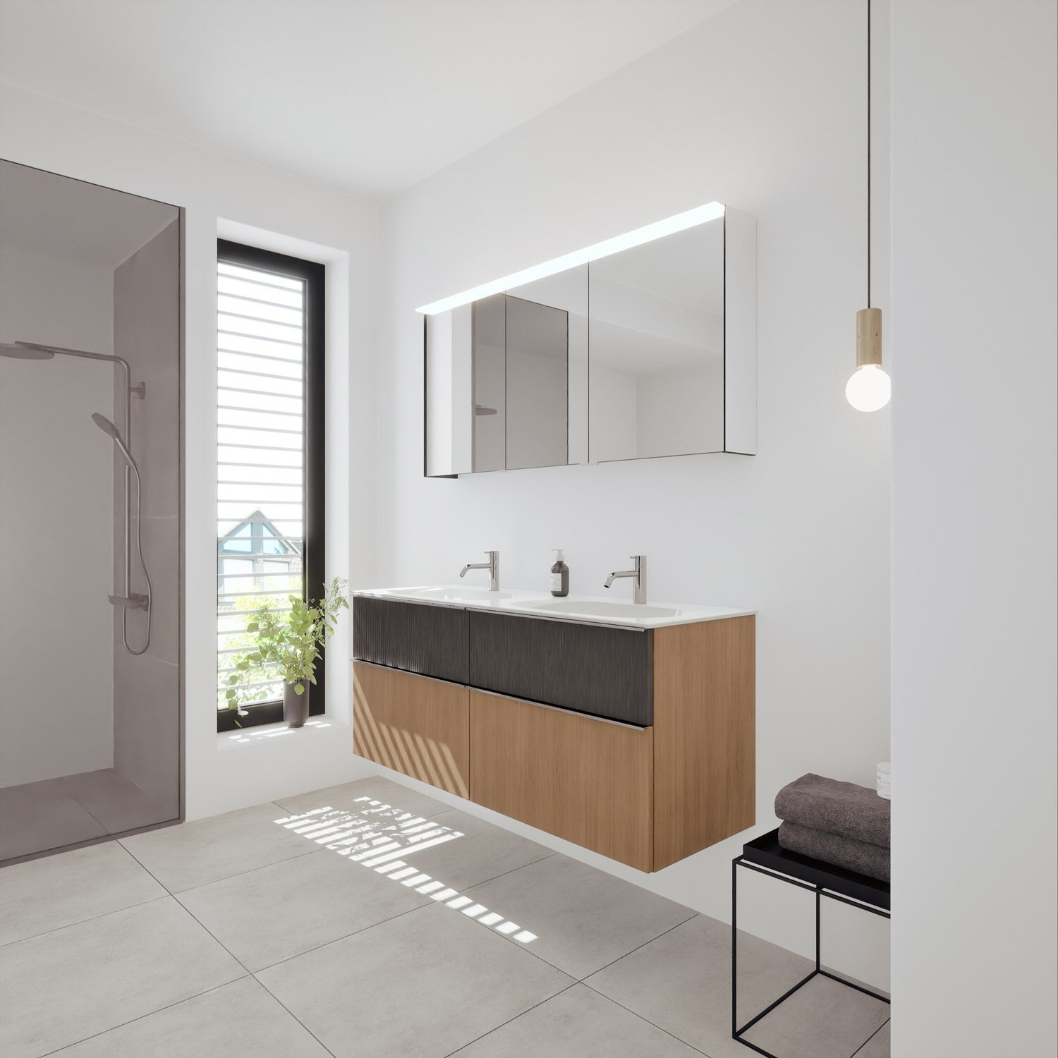 - Spiegelschrank, Waschtischunterschrank, Waschtisch,burgbad cleanFlow, Befestigung außer Stockschrauben
