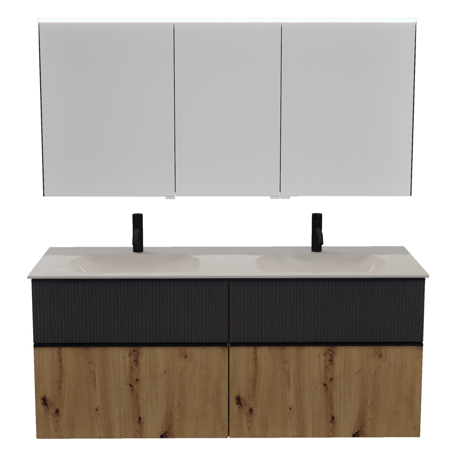 burgbad Fiumo 2.0 Badmöbelset 142 cm mit Waschtisch mit Unterschrank mit Griff G0200 und Spiegelschrank