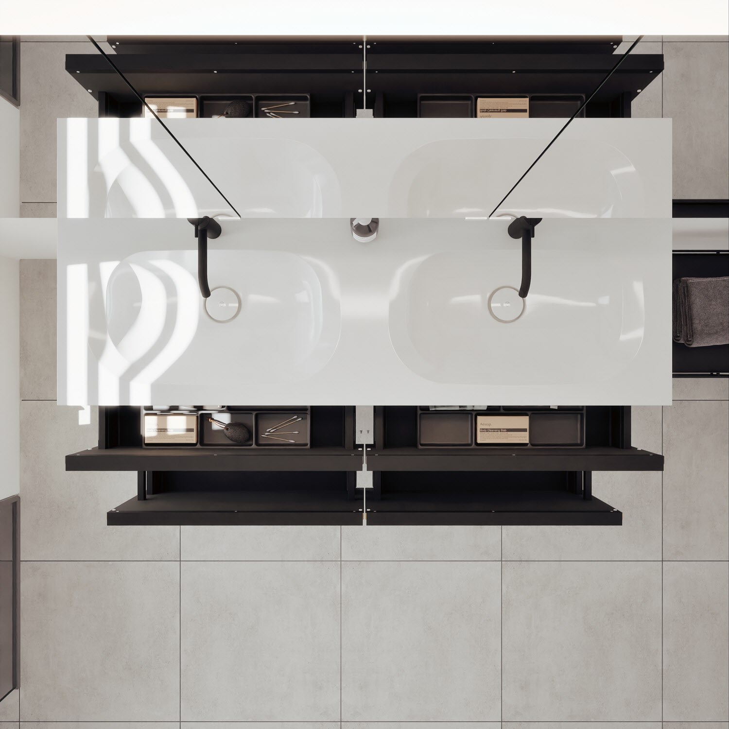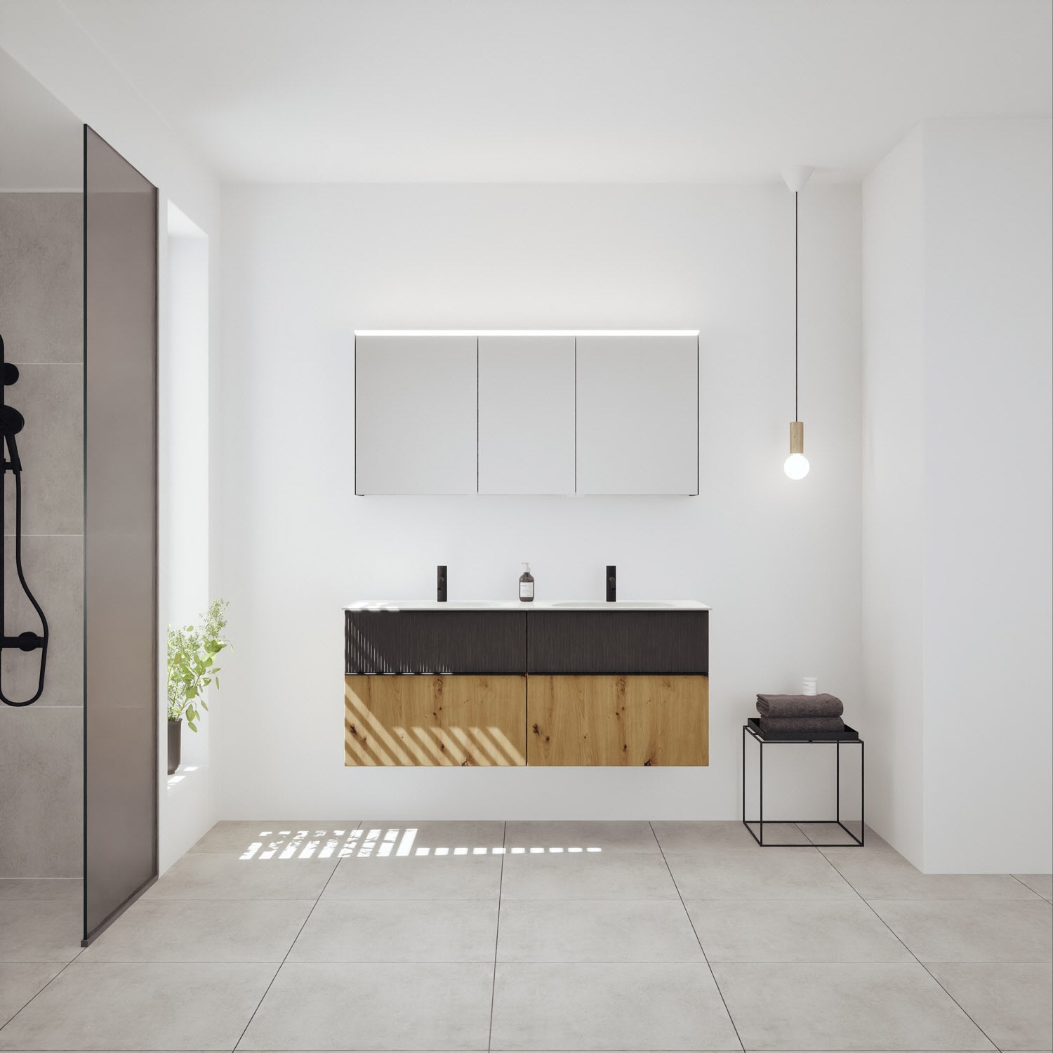 - Spiegelschrank, Waschtischunterschrank, Waschtisch,burgbad cleanFlow, Befestigung außer Stockschrauben