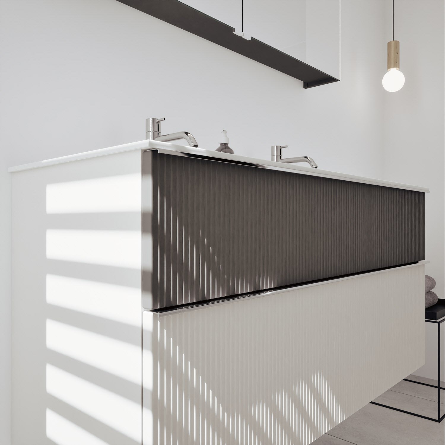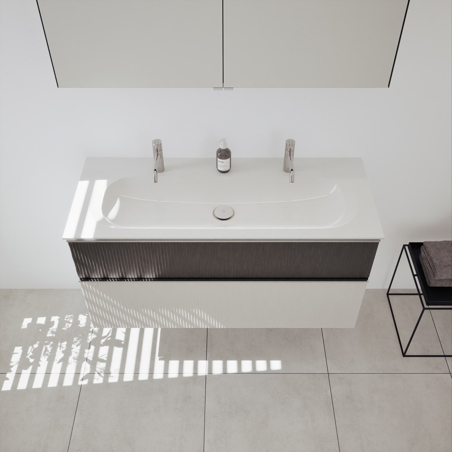 - Spiegelschrank, Waschtischunterschrank, Waschtisch,burgbad cleanFlow, Befestigung außer Stockschrauben