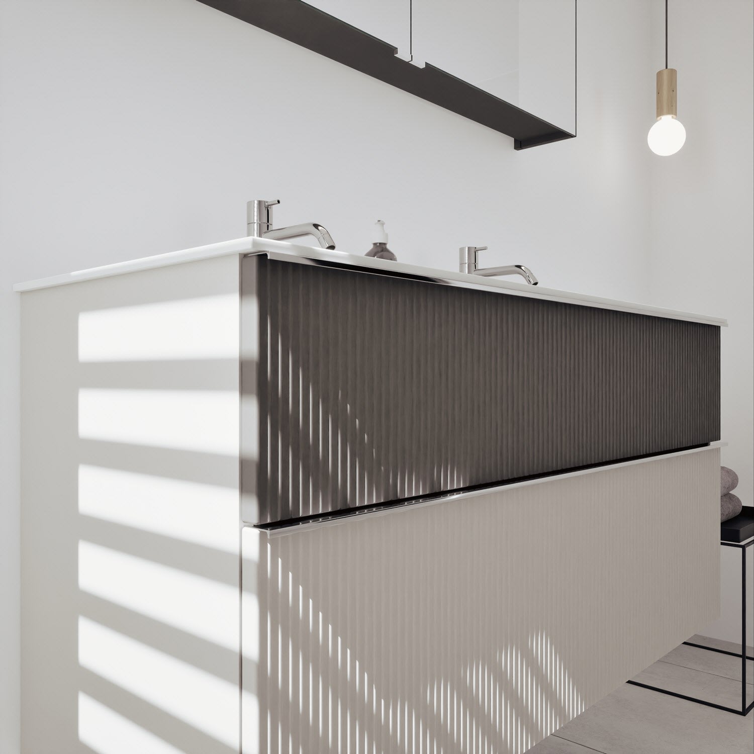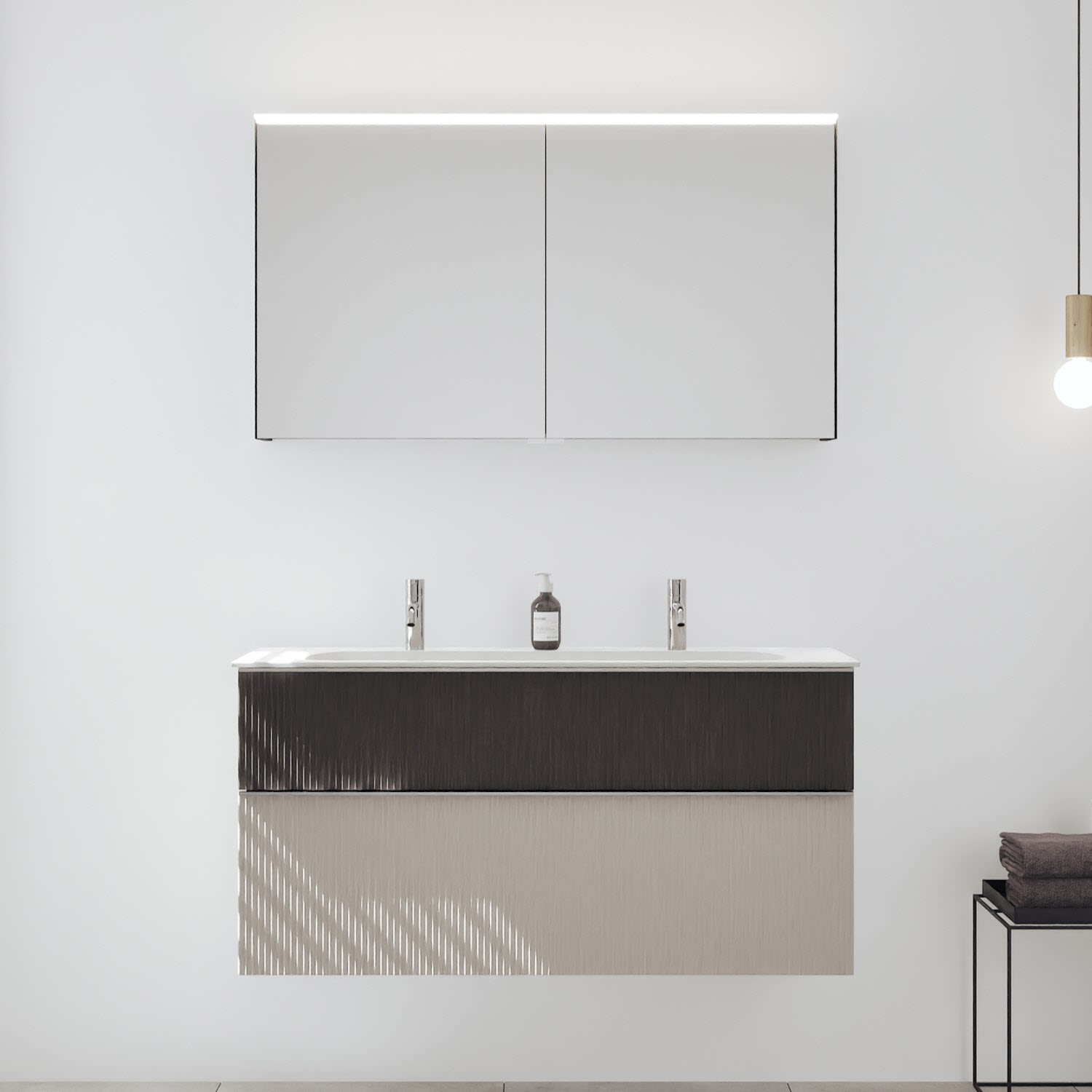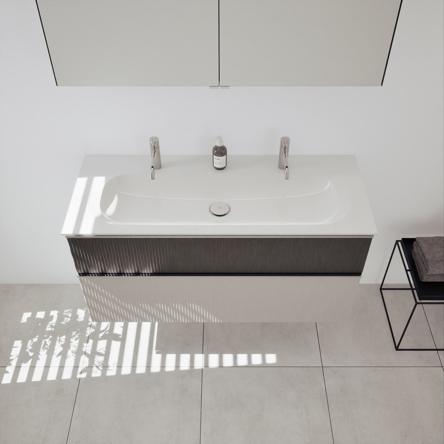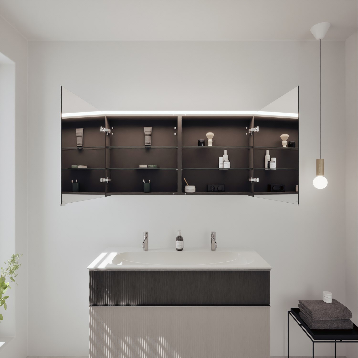 - Spiegelschrank, Waschtischunterschrank, Waschtisch,burgbad cleanFlow, Befestigung außer Stockschrauben