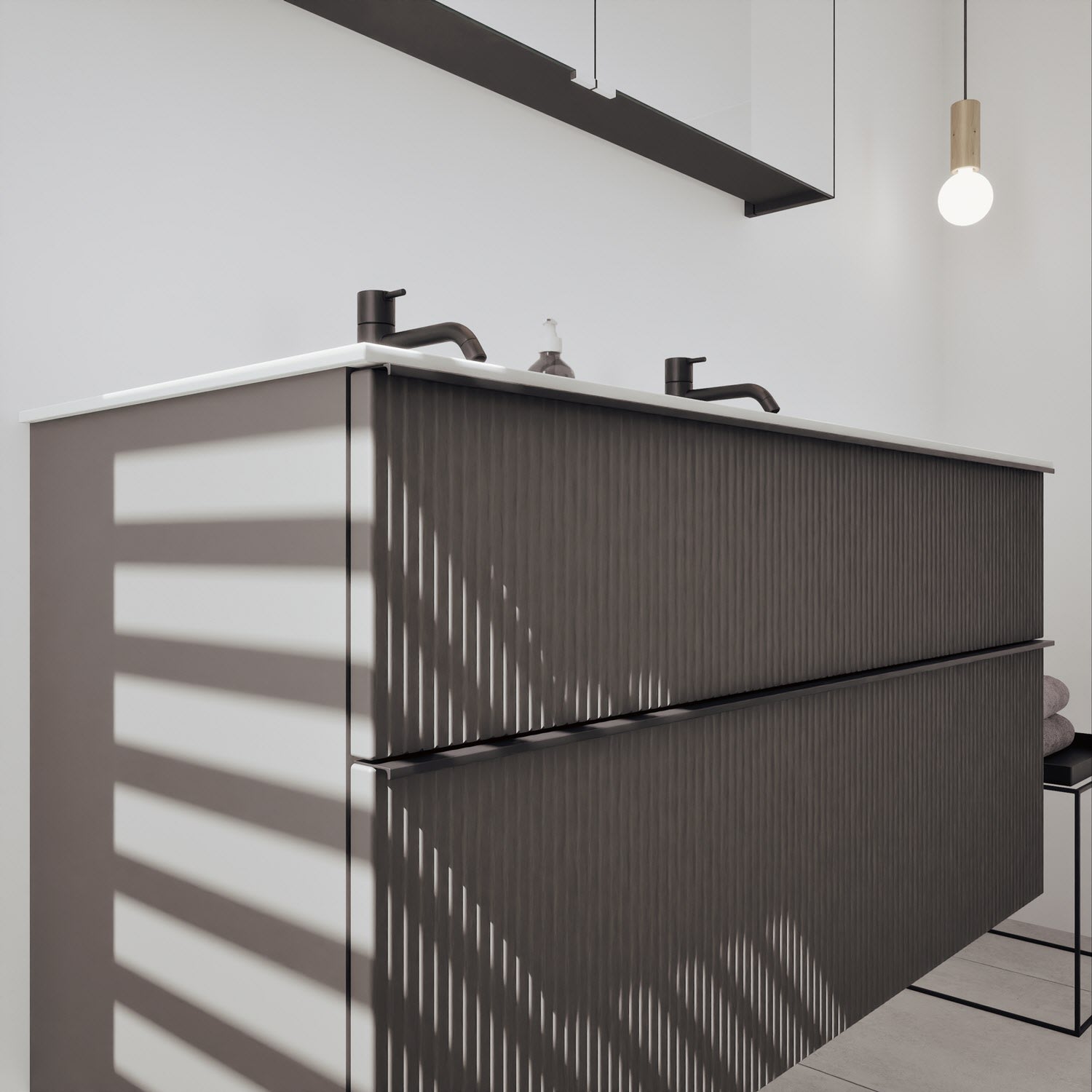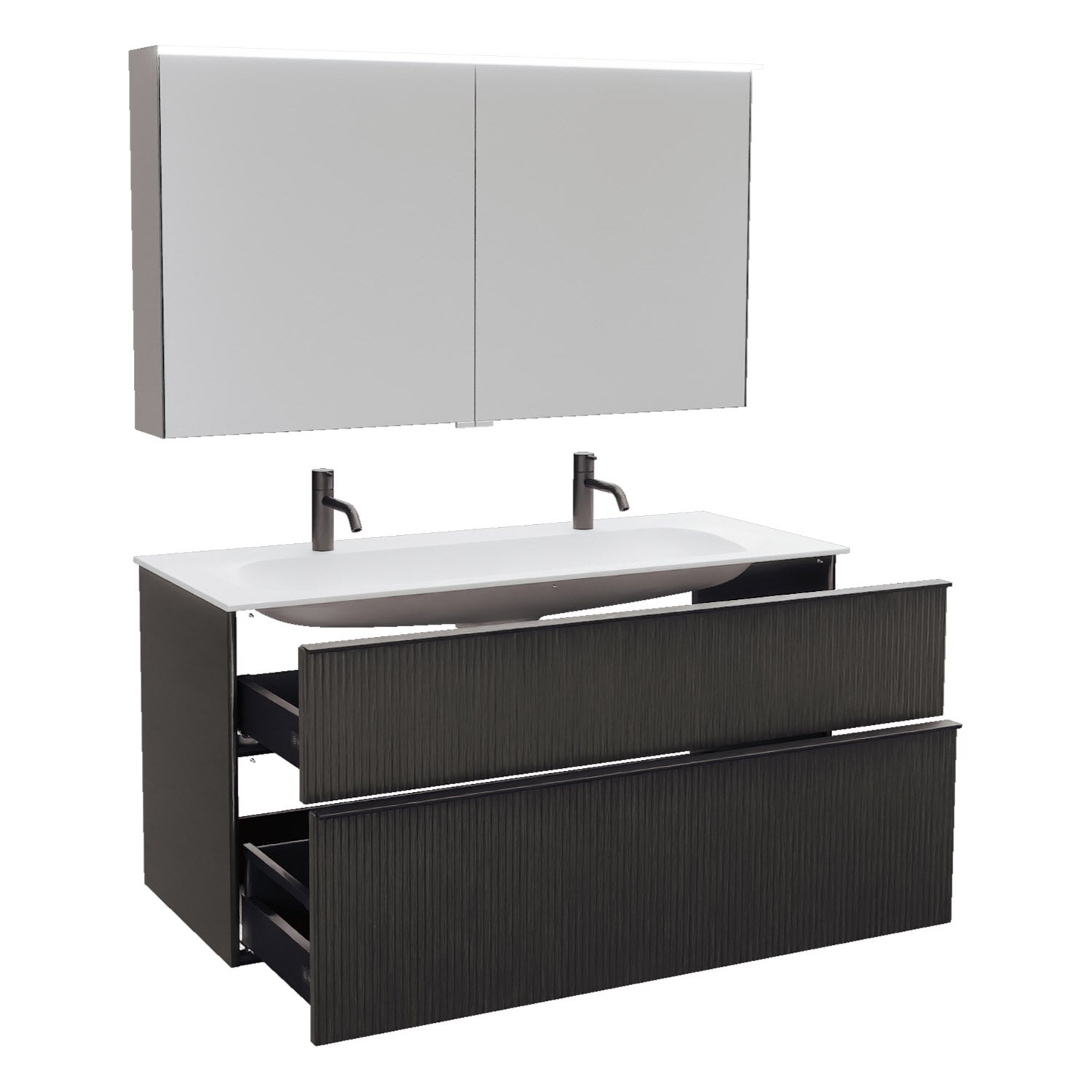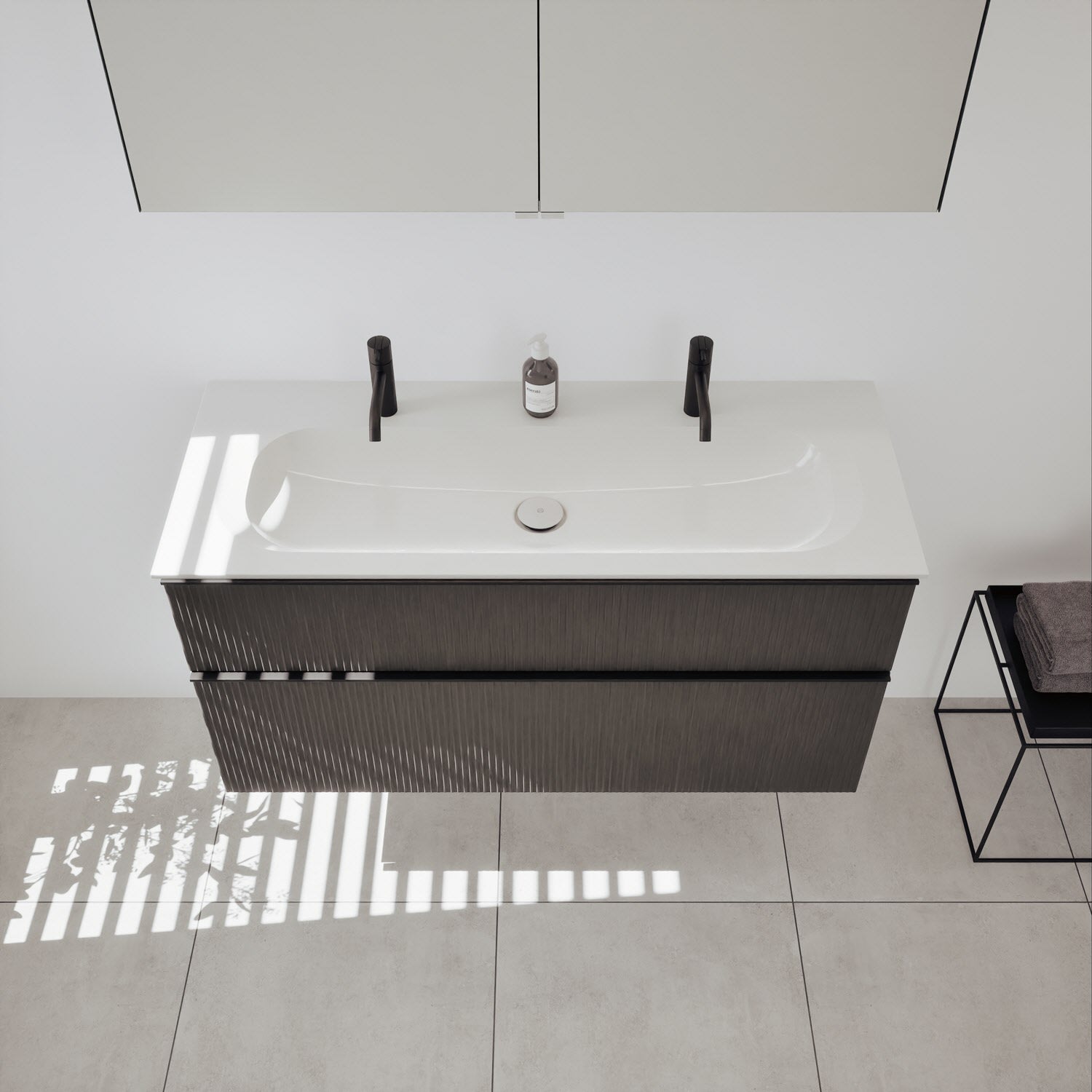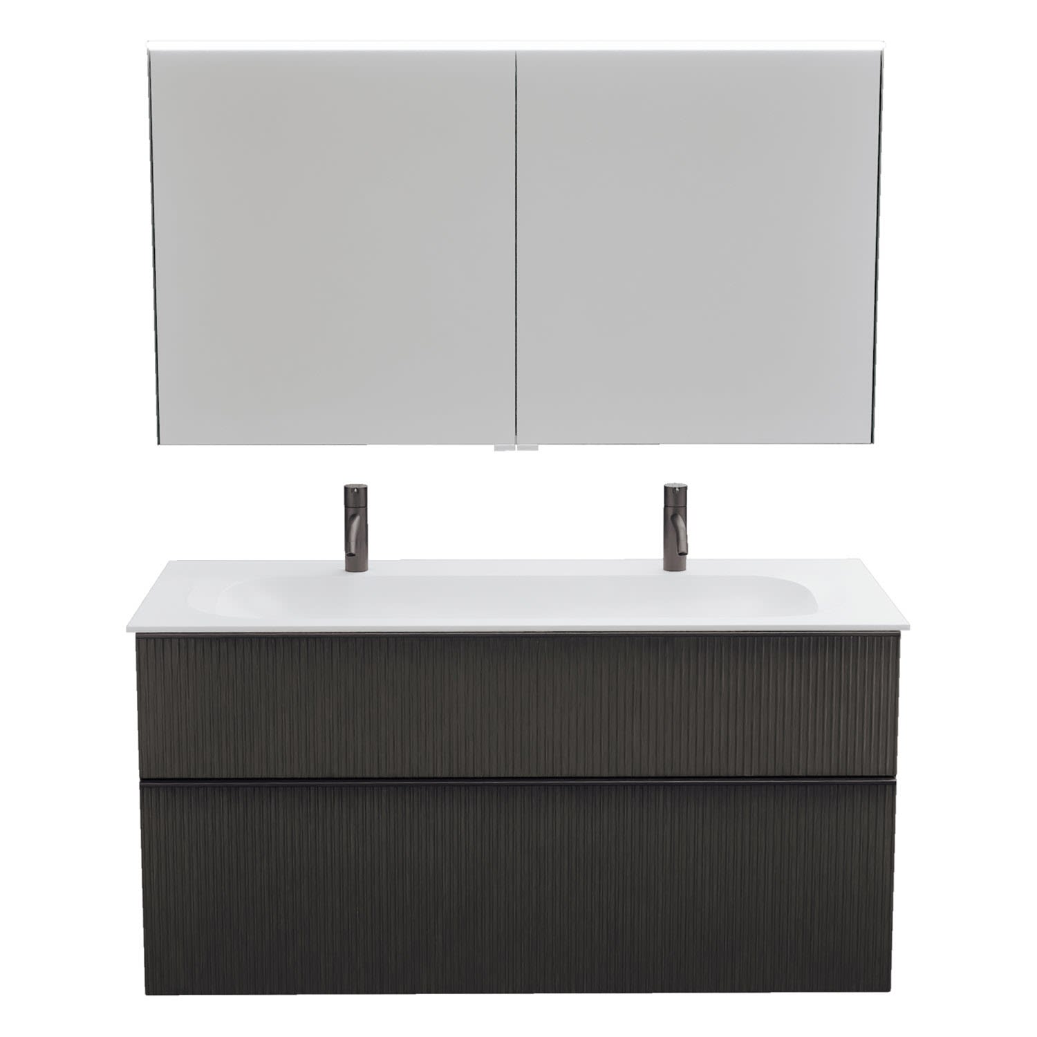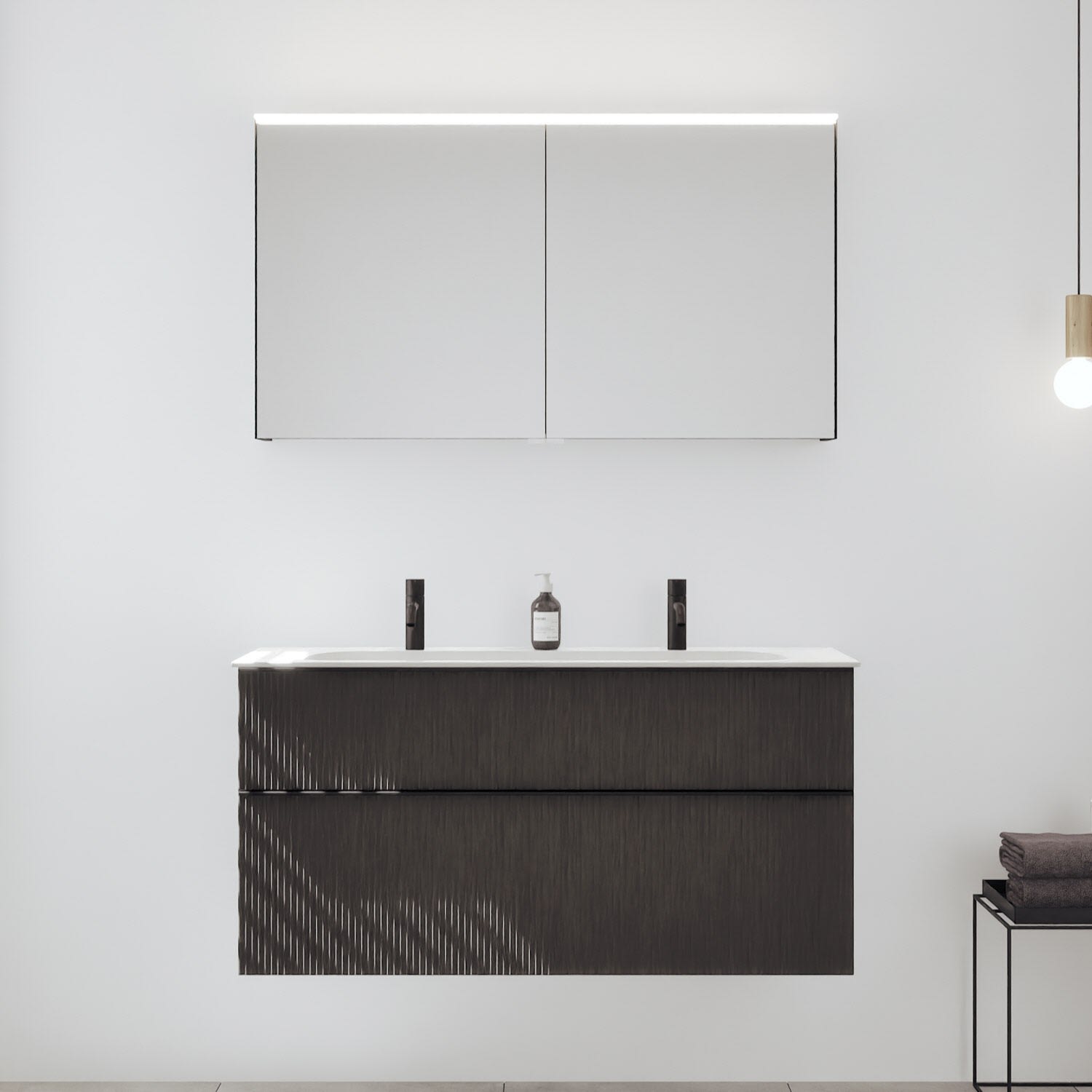 burgbad Fiumo 2.0 Badmöbelset 122 cm mit Waschtisch mit Unterschrank mit Griff G0200 und Spiegelschrank