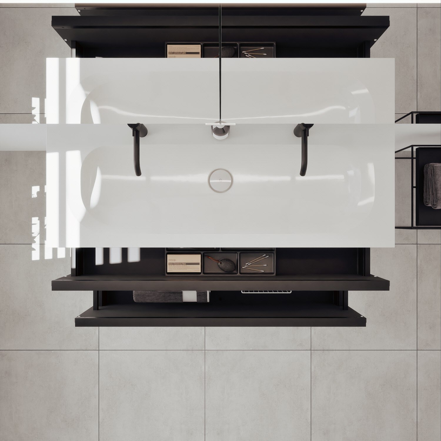 - Spiegelschrank, Waschtischunterschrank, Waschtisch,burgbad cleanFlow, Befestigung außer Stockschrauben
