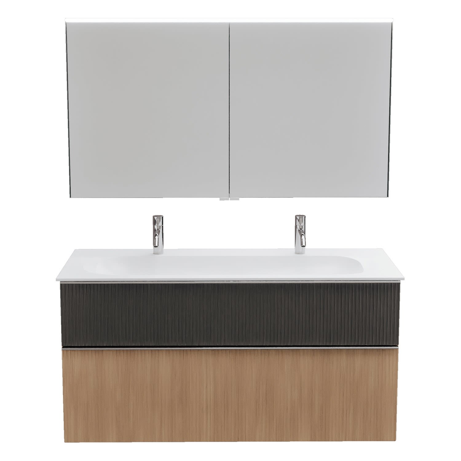 burgbad Fiumo 2.0 Badmöbelset 122 cm mit Waschtisch mit Unterschrank mit Griff G0146 und Spiegelschrank