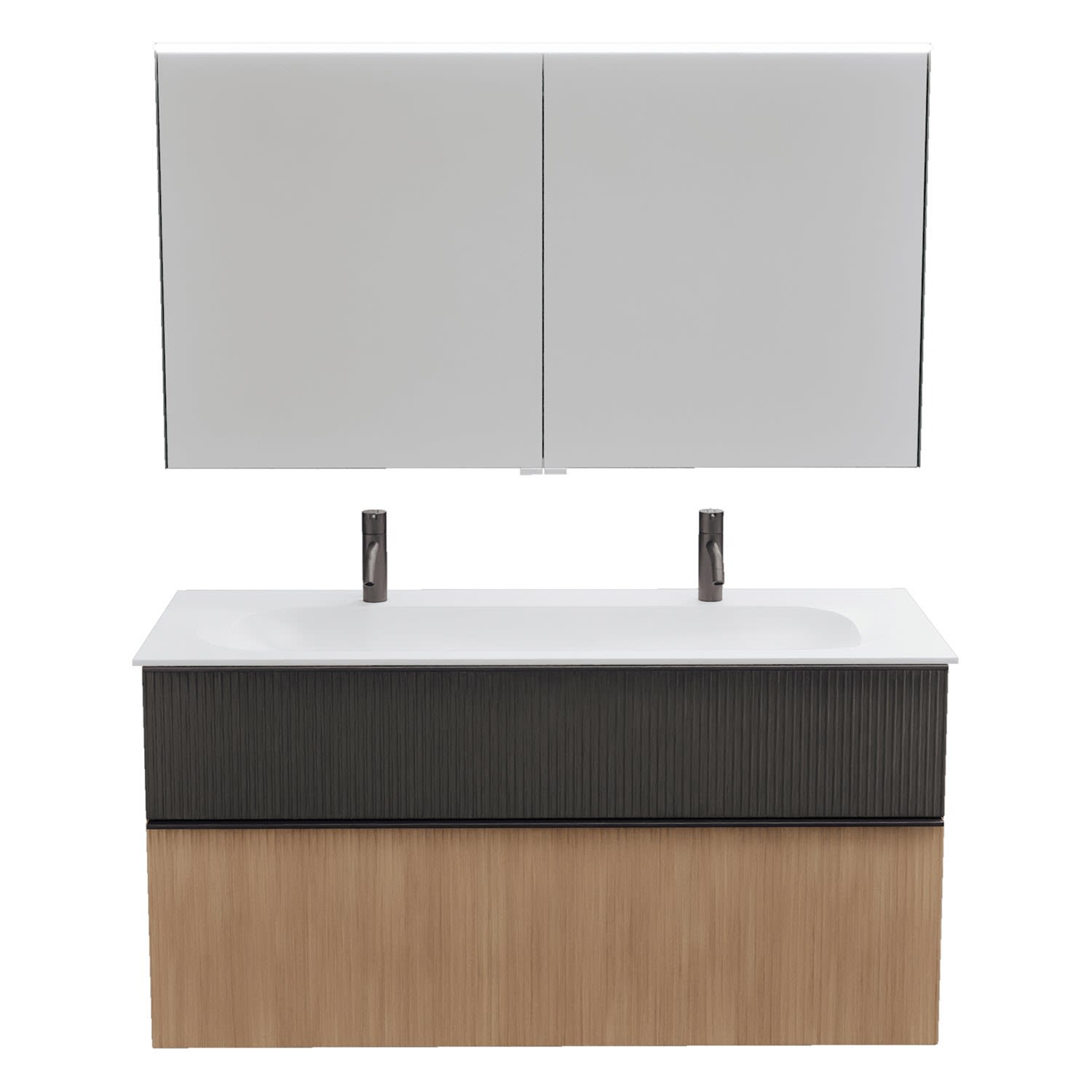 burgbad Fiumo 2.0 Badmöbelset 122 cm mit Waschtisch mit Unterschrank mit Griff G0200 und Spiegelschrank