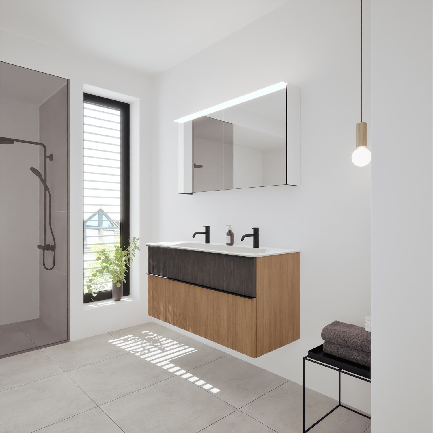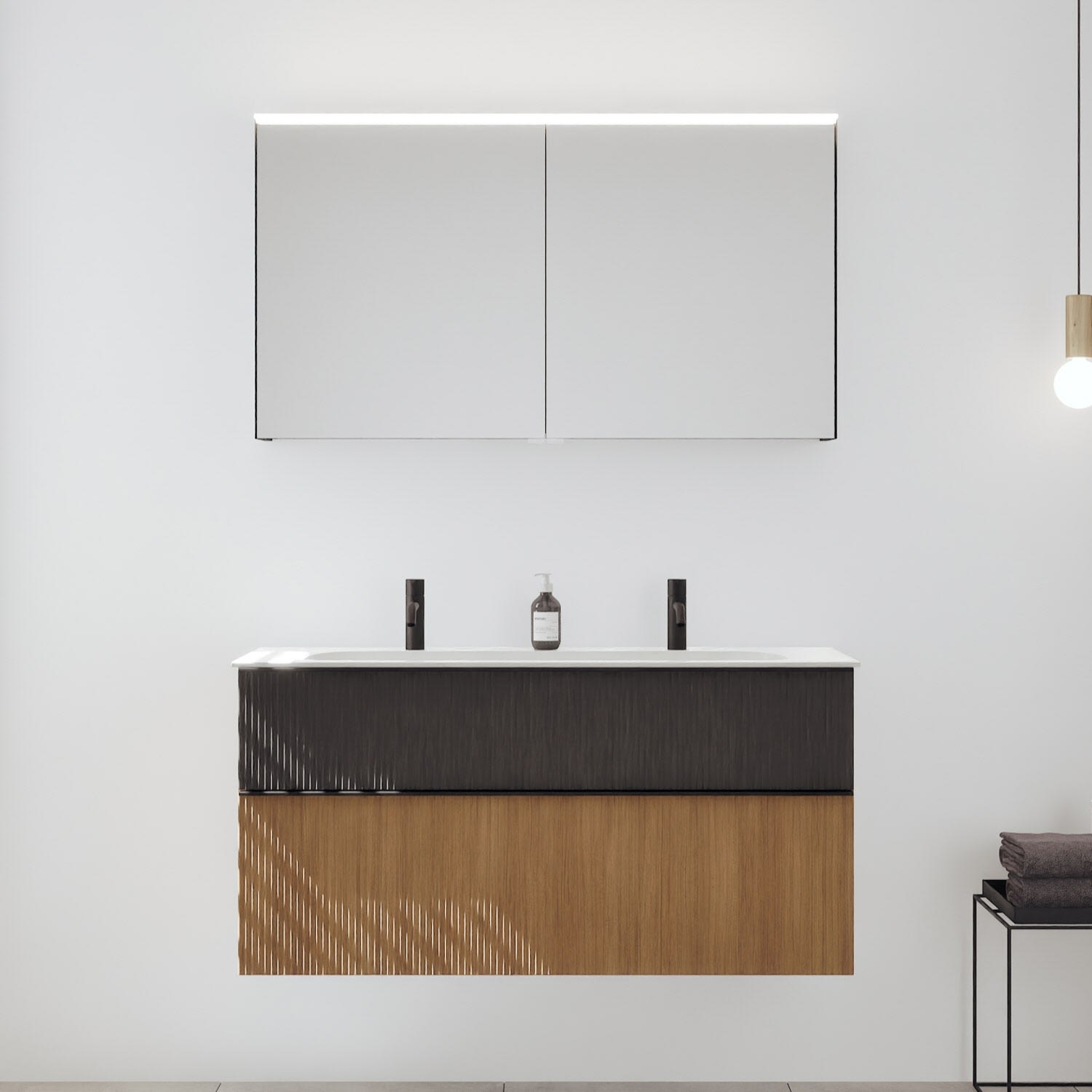 - Spiegelschrank, Waschtischunterschrank, Waschtisch,burgbad cleanFlow, Befestigung außer Stockschrauben