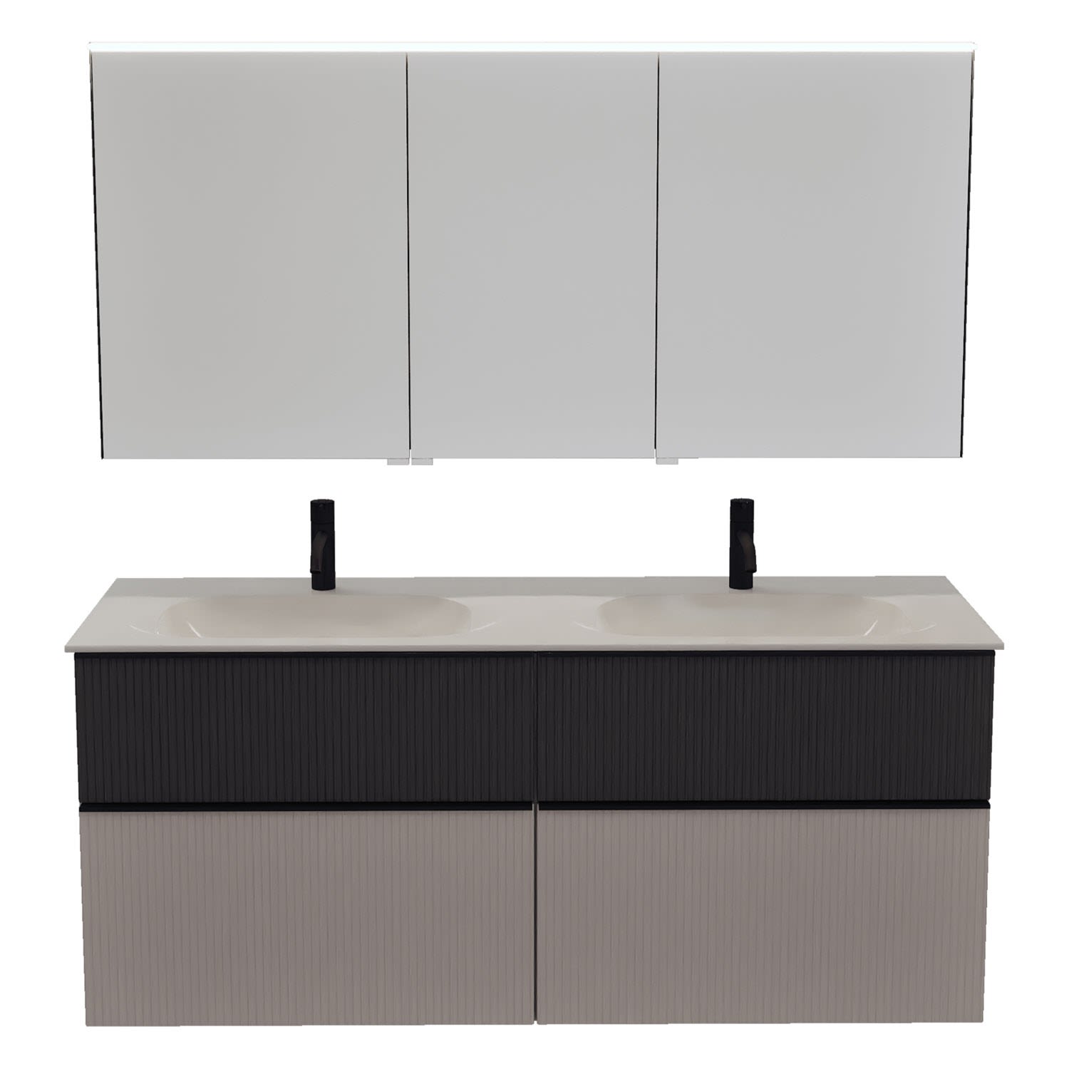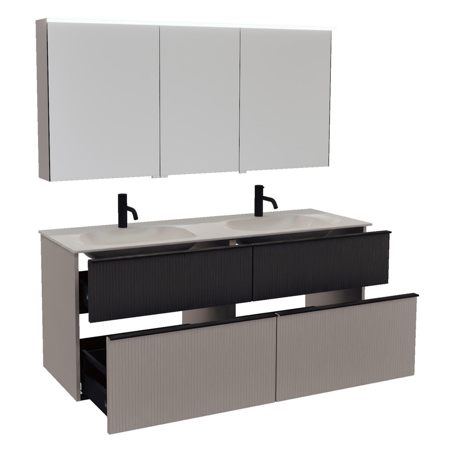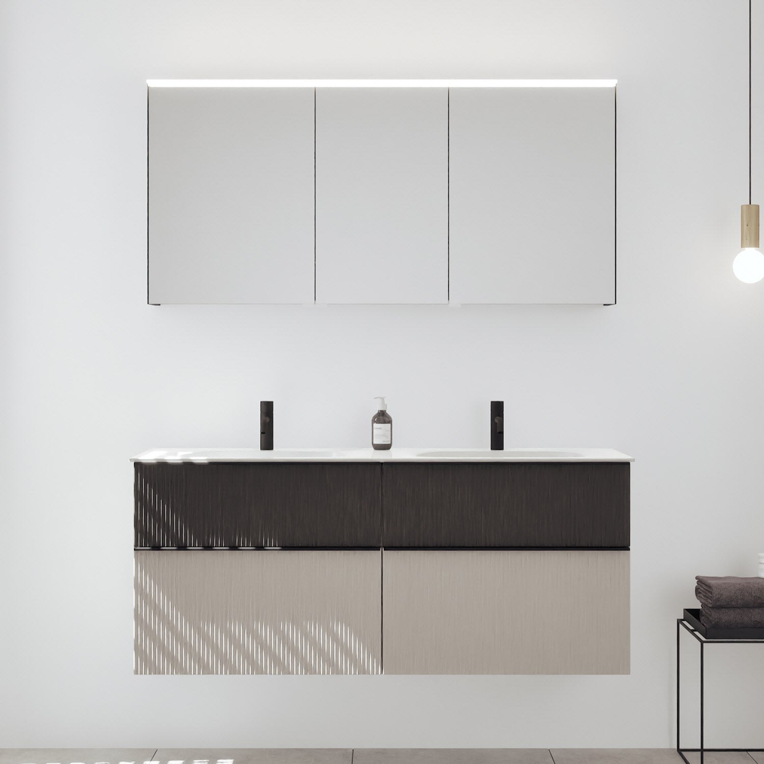 burgbad Fiumo 2.0 Badmöbelset 142 cm mit Waschtisch mit Unterschrank mit Griff G0200 und Spiegelschrank