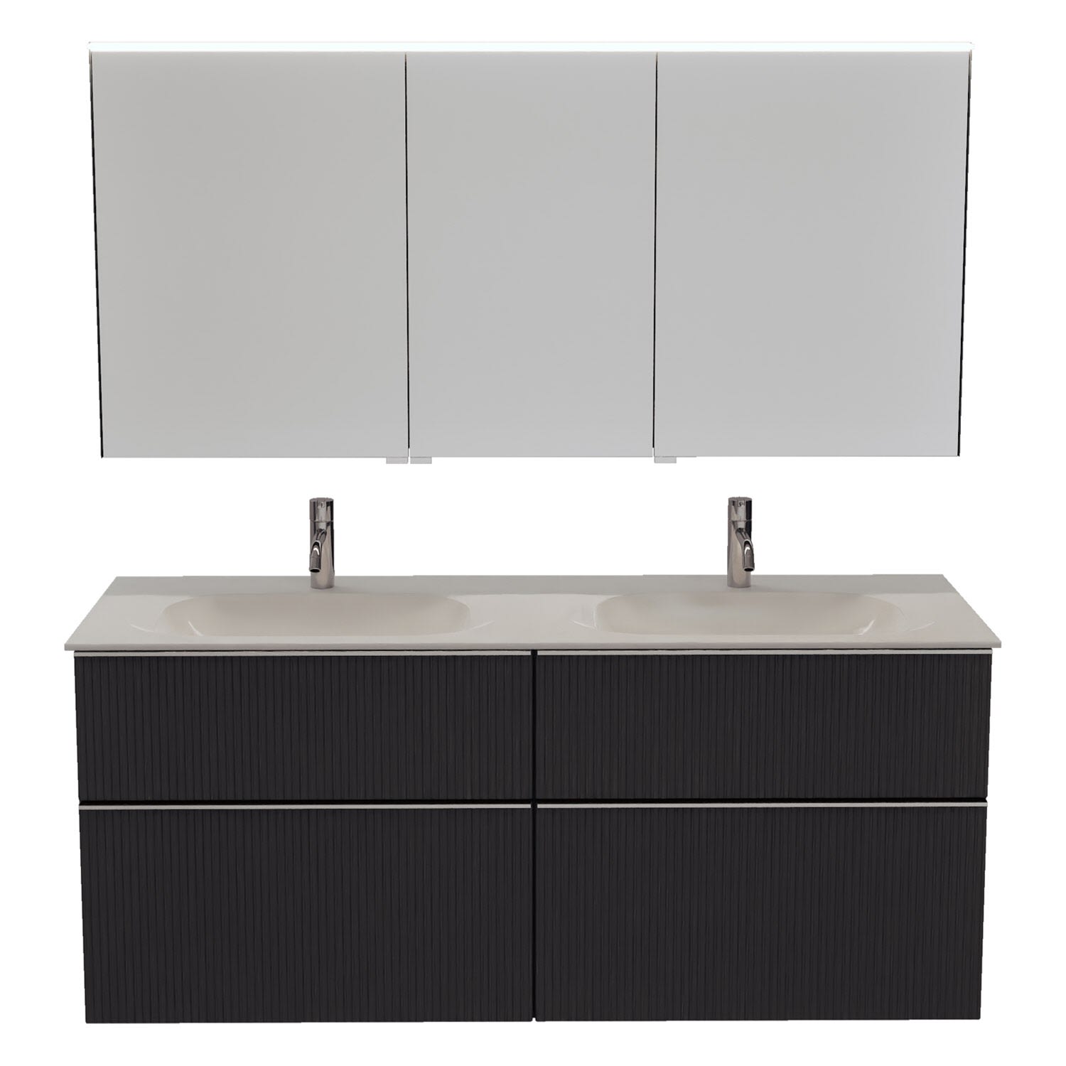 burgbad Fiumo 2.0 Badmöbelset 142 cm mit Waschtisch mit Unterschrank mit Griff G0146 und Spiegelschrank
