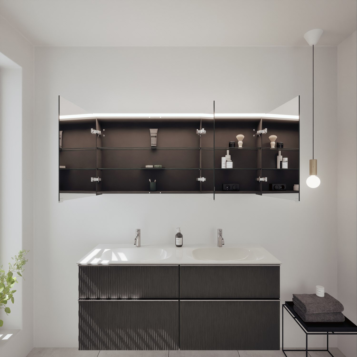 - Spiegelschrank, Waschtischunterschrank, Waschtisch,burgbad cleanFlow, Befestigung außer Stockschrauben
