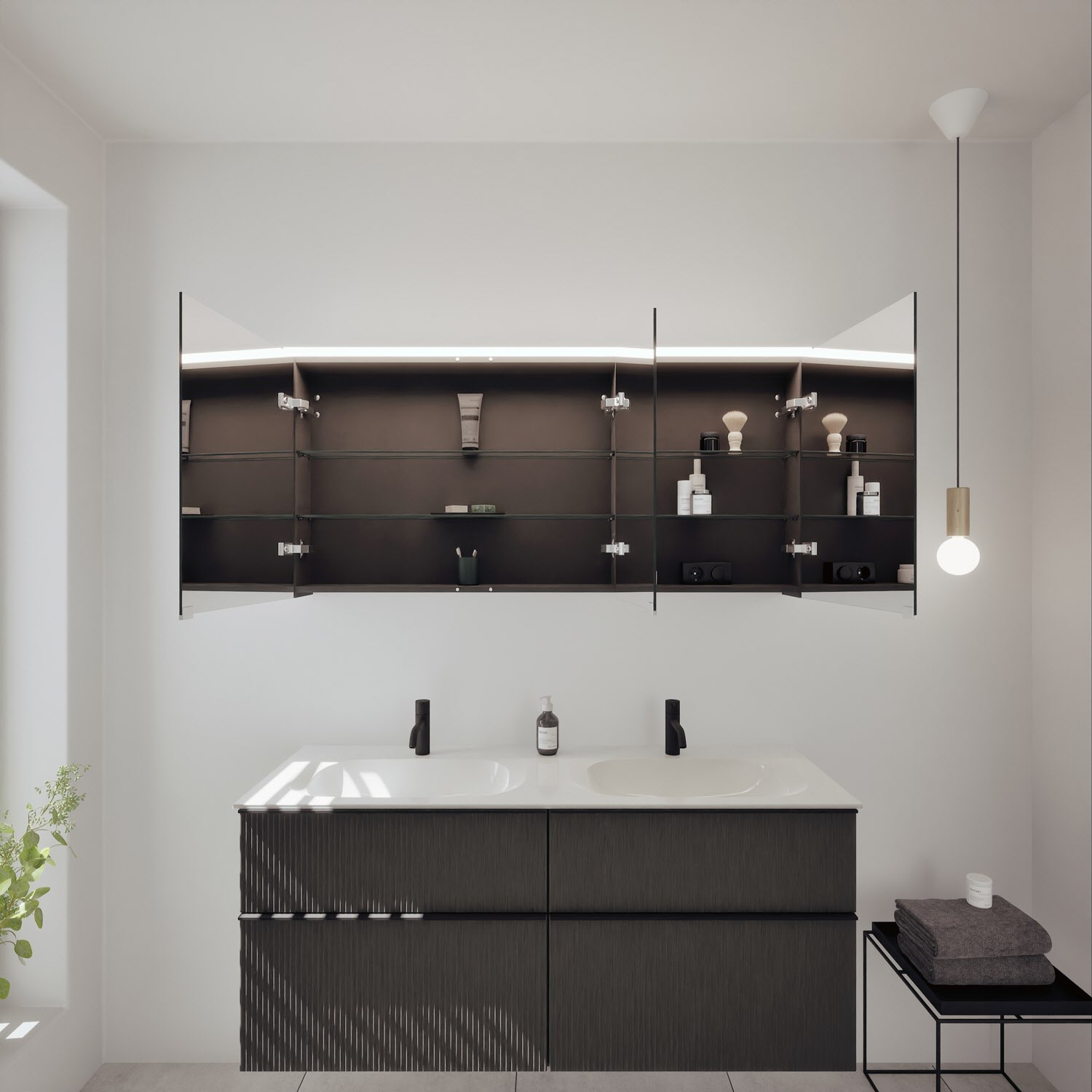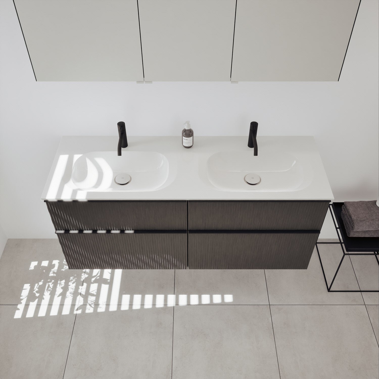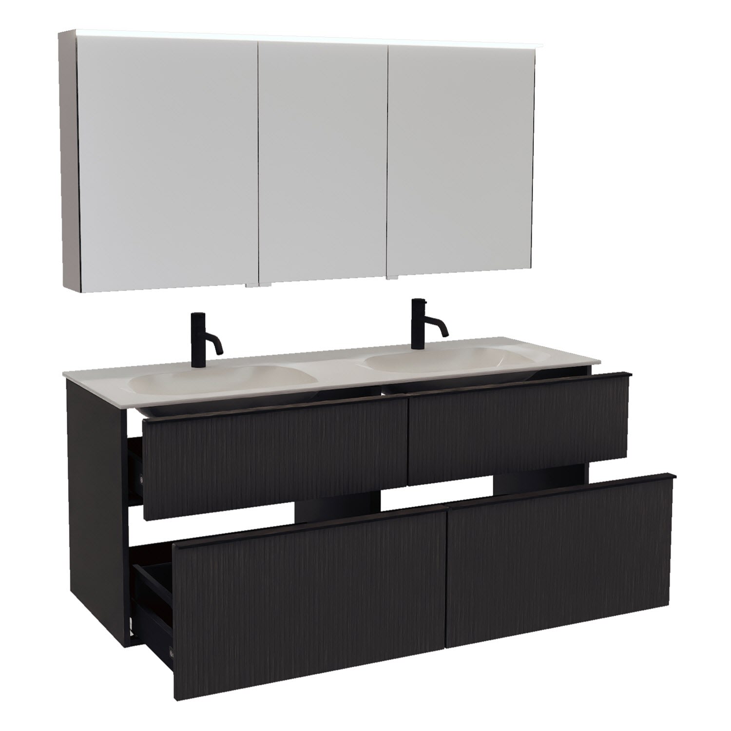 burgbad Fiumo 2.0 Badmöbelset 142 cm mit Waschtisch mit Unterschrank mit Griff G0200 und Spiegelschrank