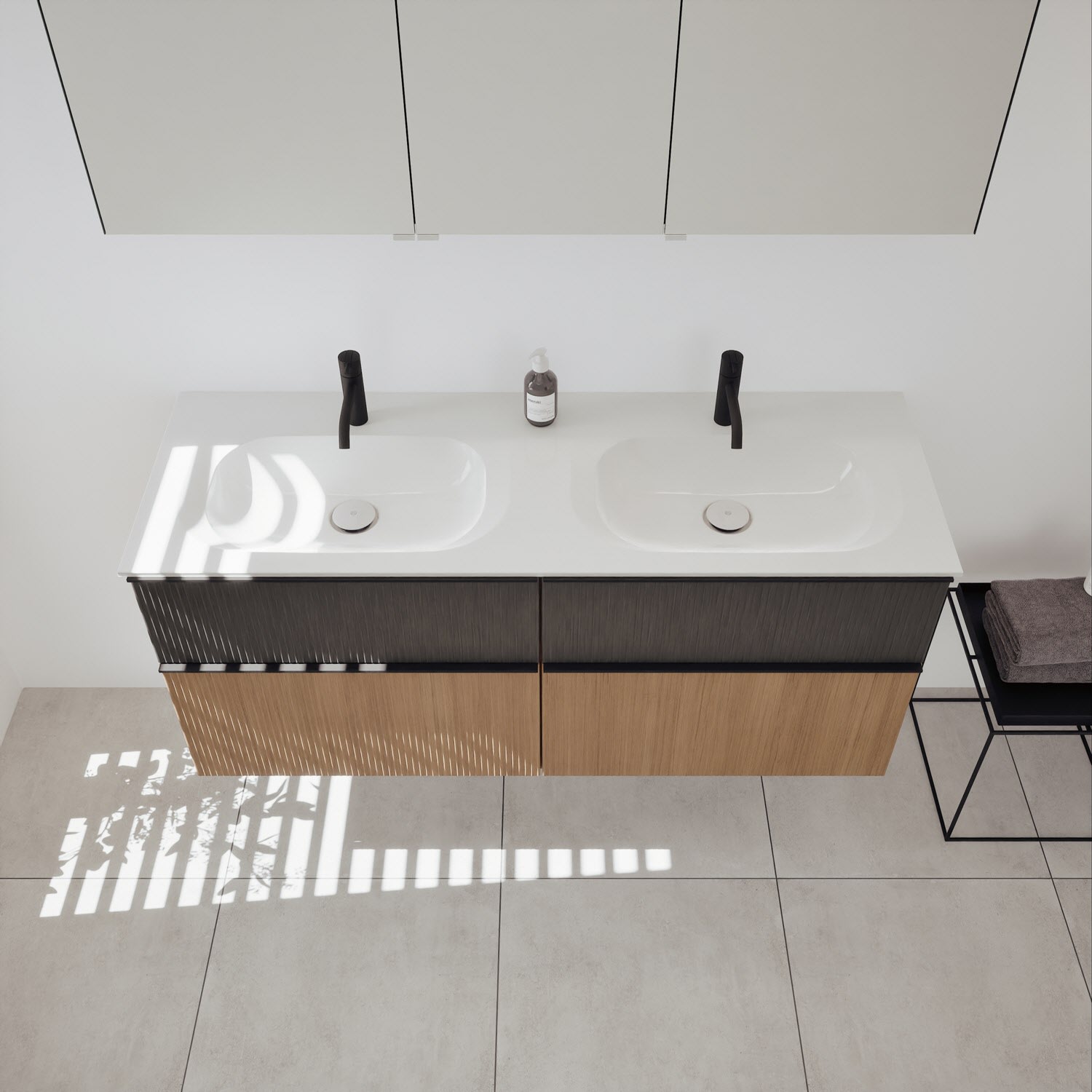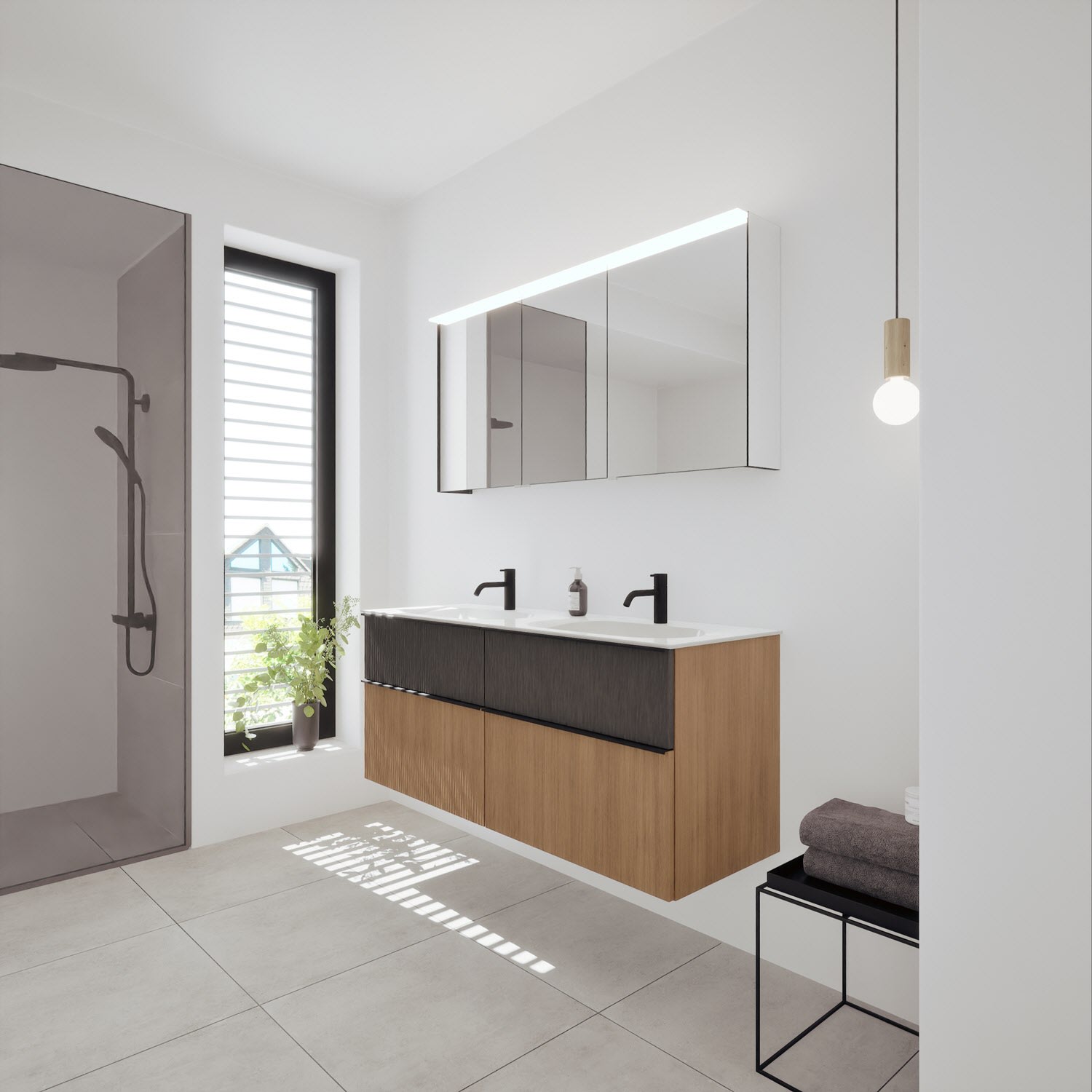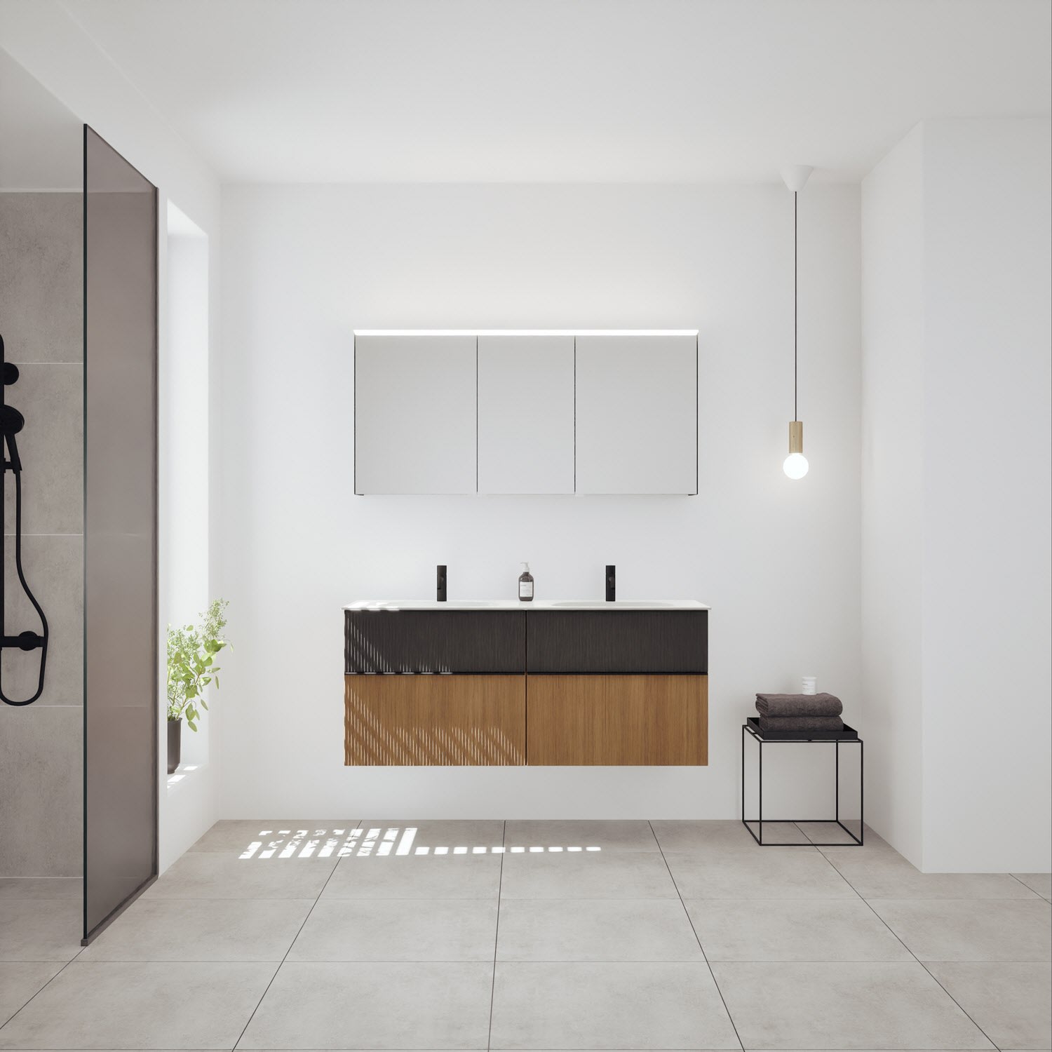 burgbad Fiumo 2.0 Badmöbelset 142 cm mit Waschtisch mit Unterschrank mit Griff G0200 und Spiegelschrank