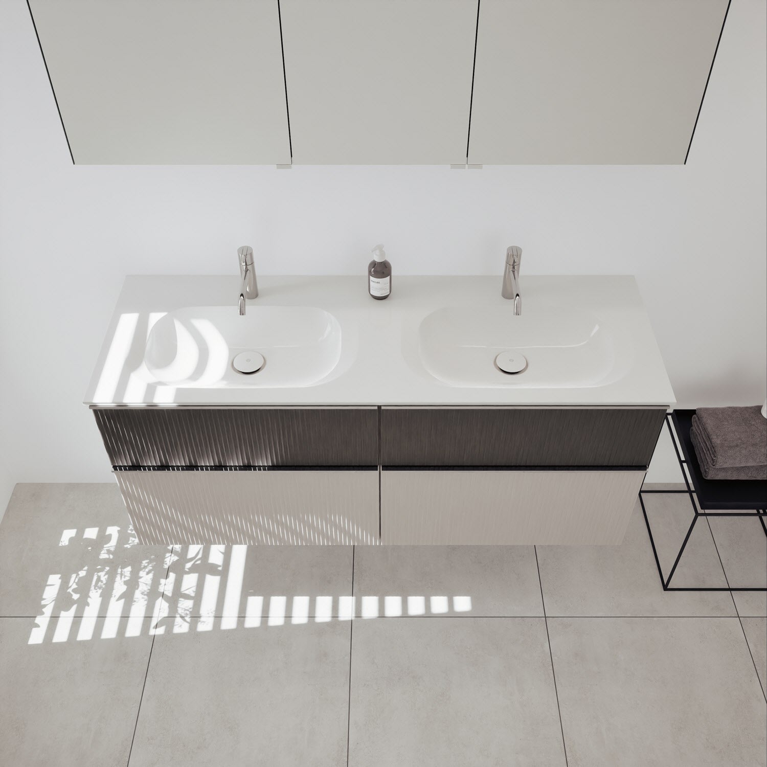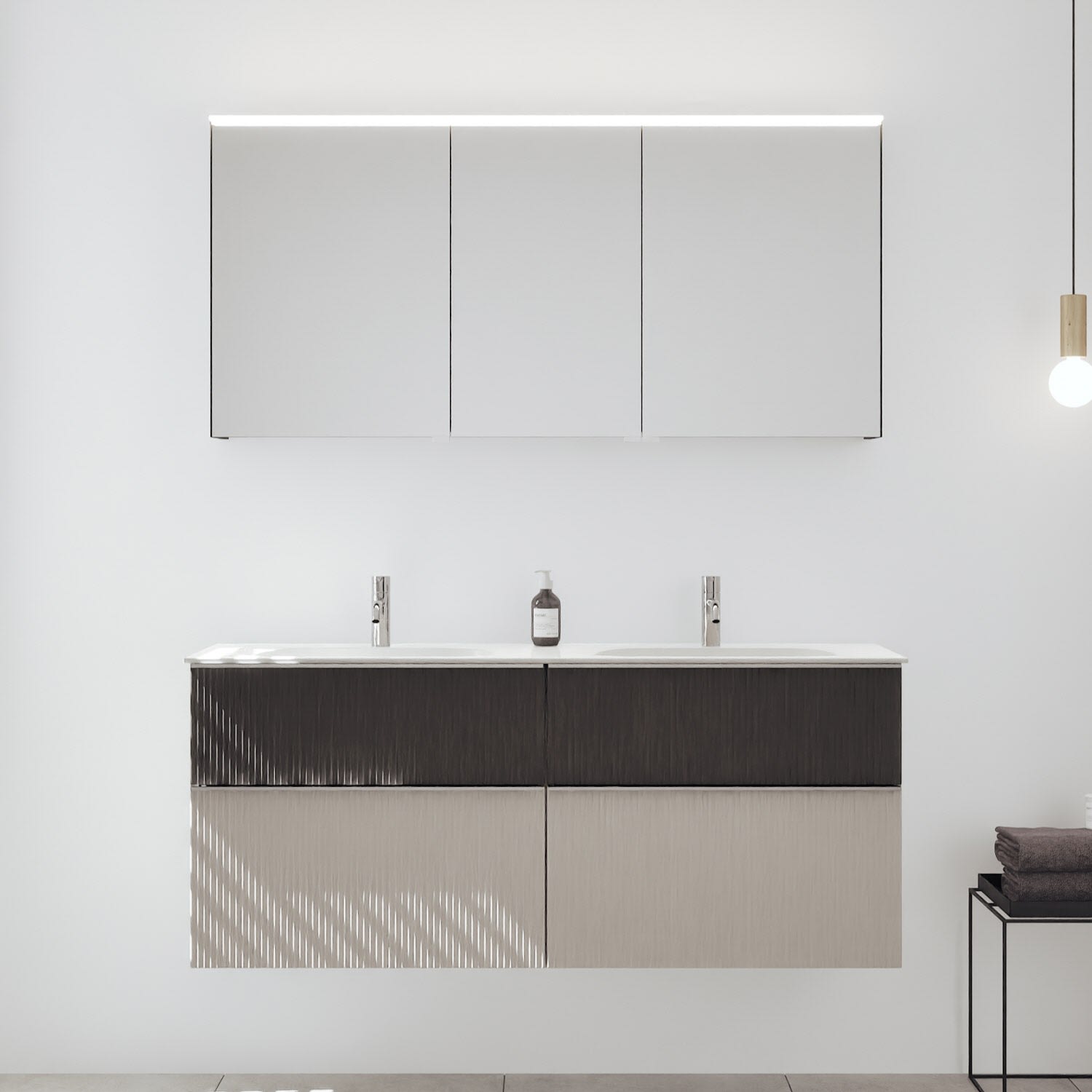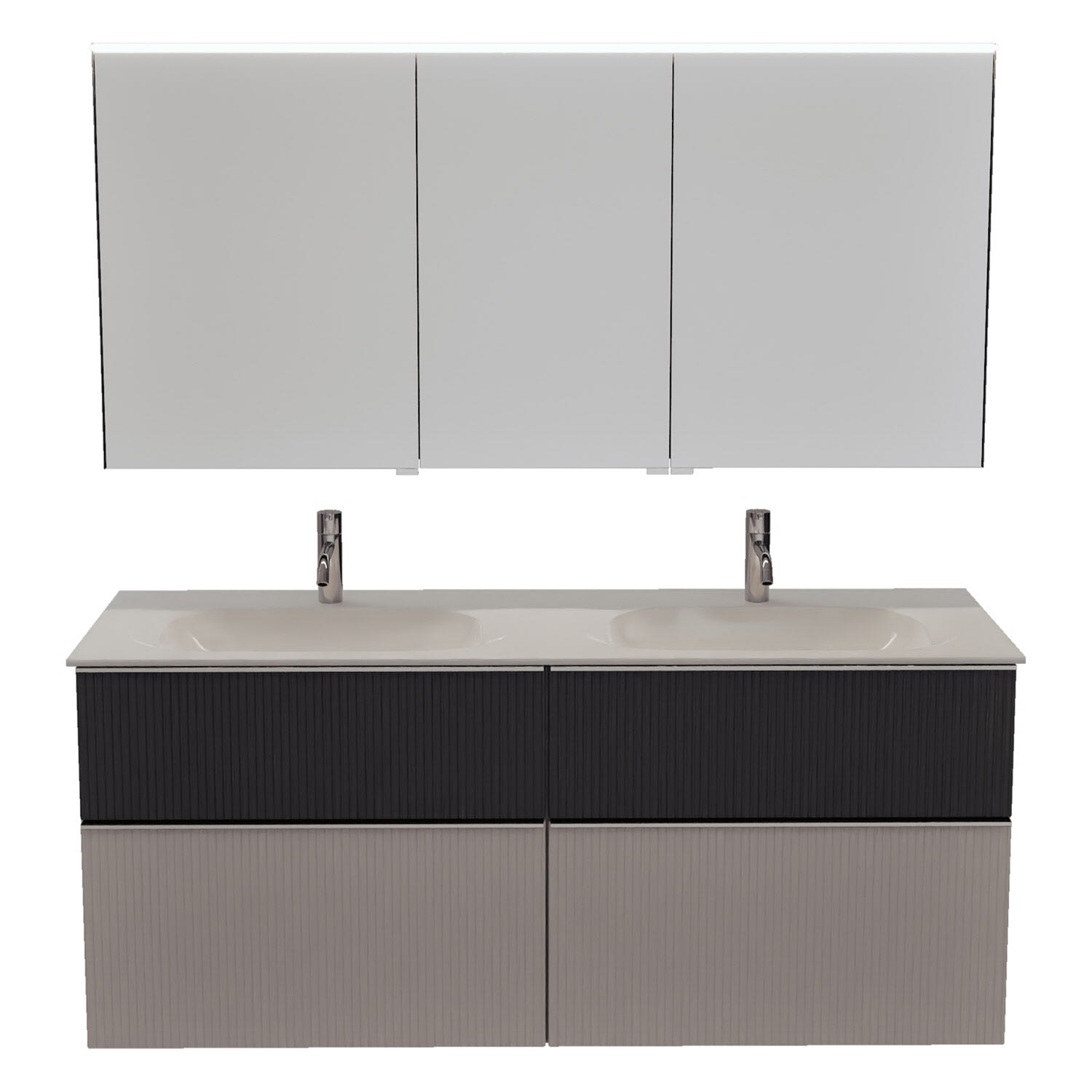 burgbad Fiumo 2.0 Badmöbelset 142 cm mit Waschtisch mit Unterschrank mit Griff G0146 und Spiegelschrank