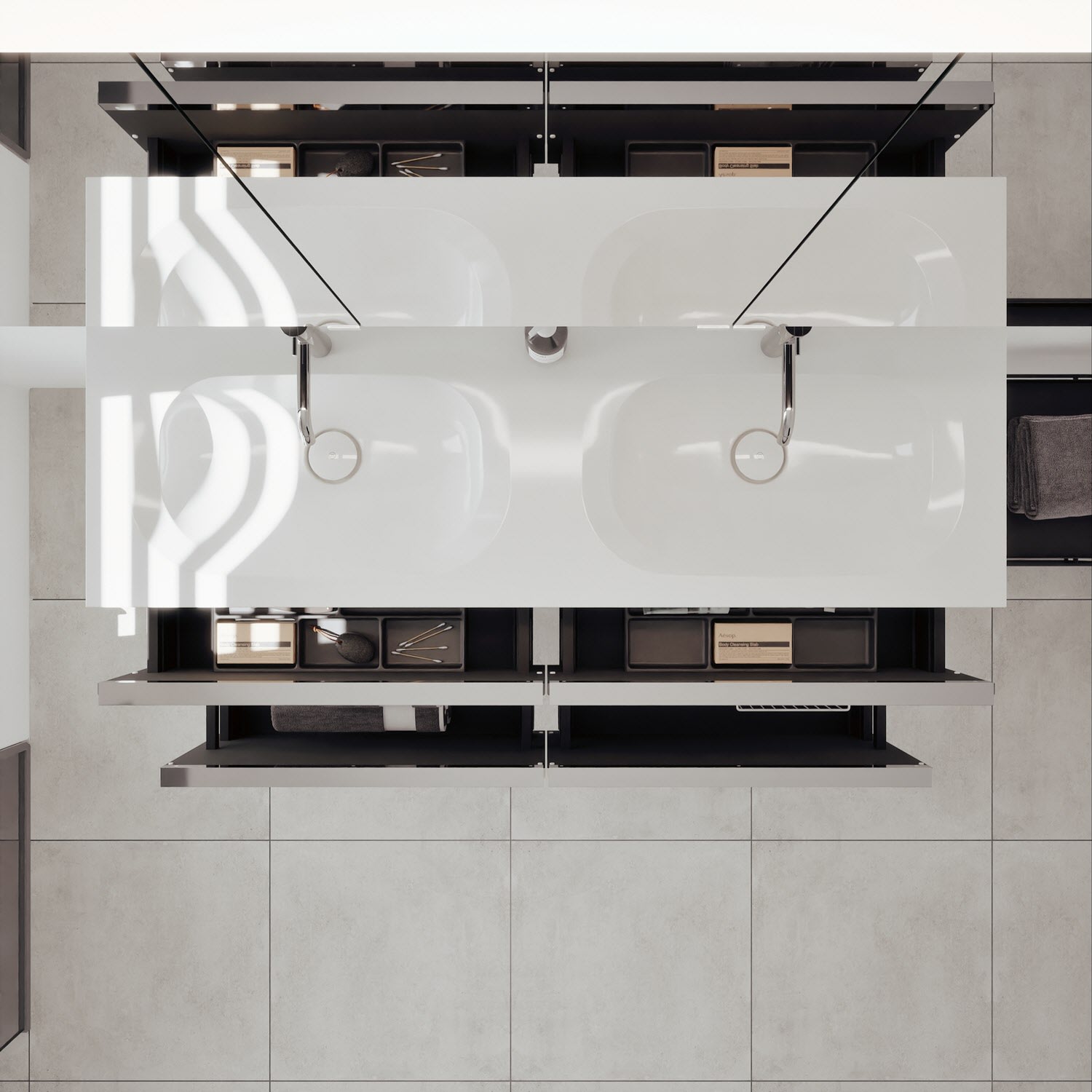 - Spiegelschrank, Waschtischunterschrank, Waschtisch,burgbad cleanFlow, Befestigung außer Stockschrauben