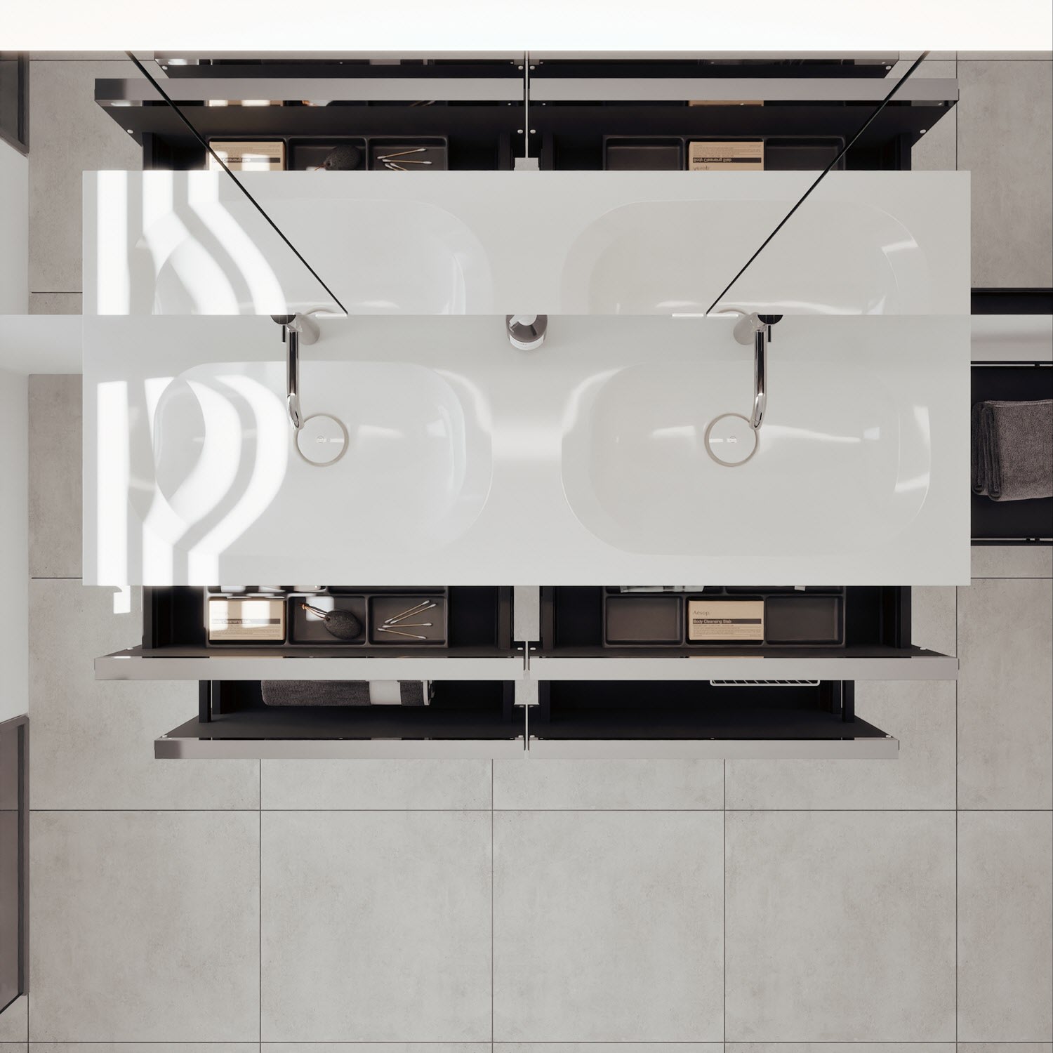 - Spiegelschrank, Waschtischunterschrank, Waschtisch,burgbad cleanFlow, Befestigung außer Stockschrauben