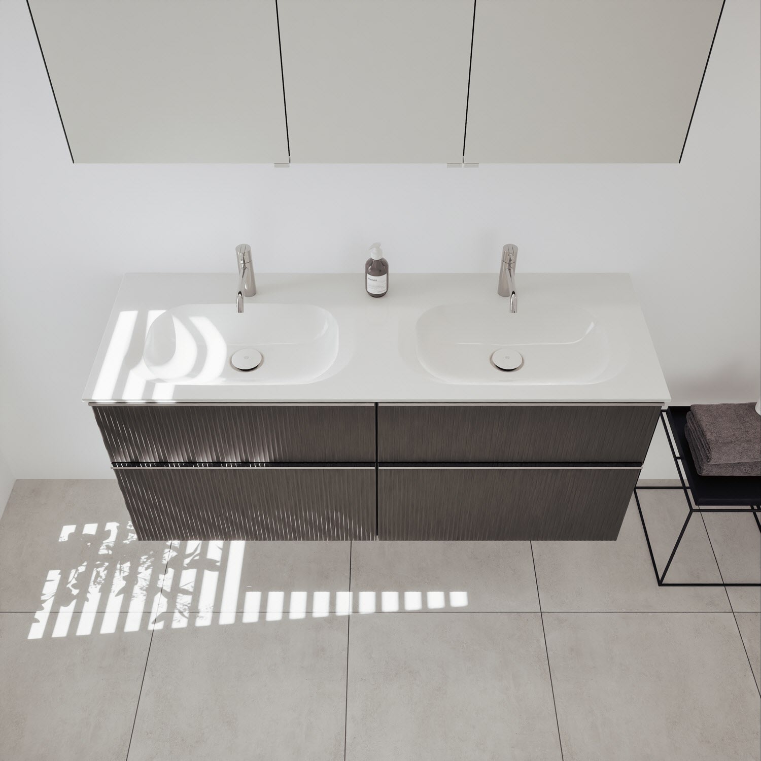 burgbad Fiumo 2.0 Badmöbelset 142 cm mit Waschtisch mit Unterschrank mit Griff G0146 und Spiegelschrank