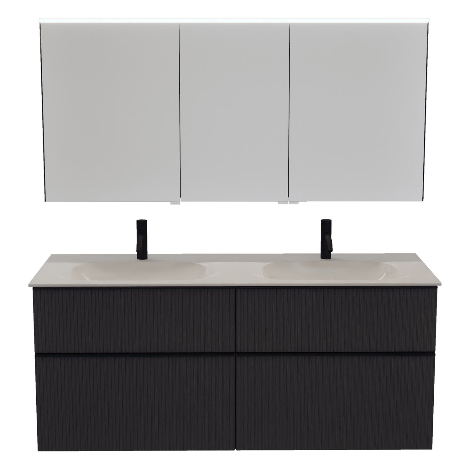burgbad Fiumo 2.0 Badmöbelset 142 cm mit Waschtisch mit Unterschrank mit Griff G0200 und Spiegelschrank